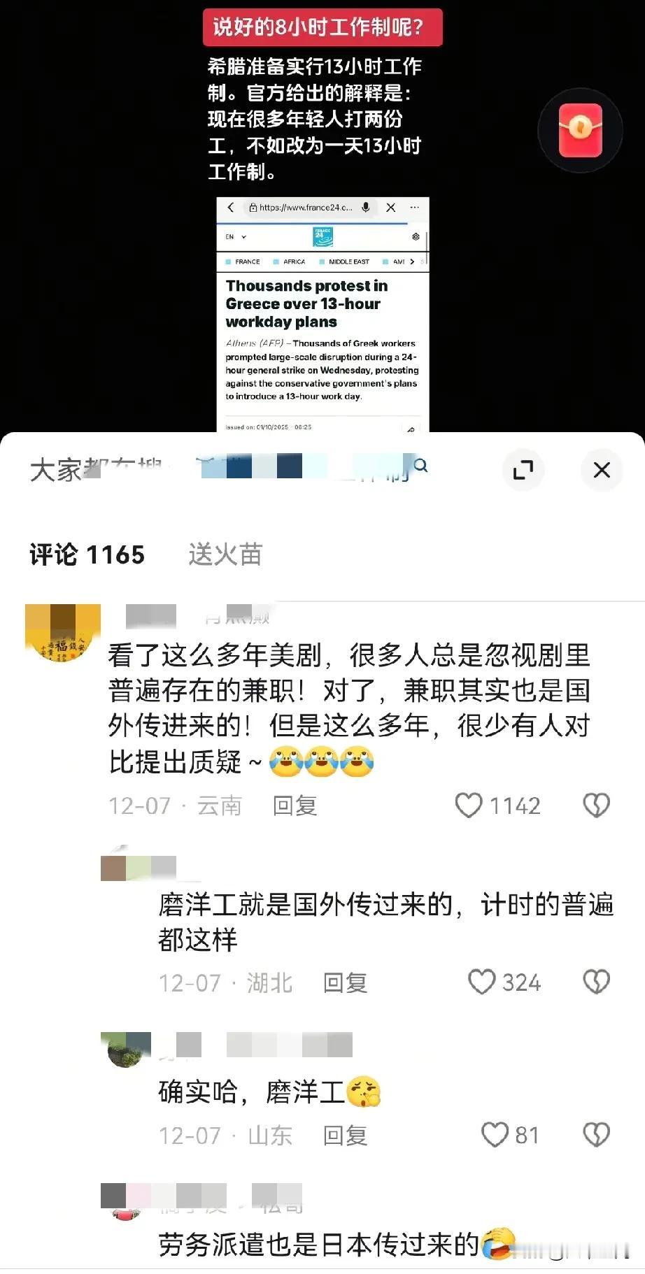 原来欧美的8小时工作制是这么玩的,确实落实了8小时工作制,但是你要打两份工才能生存,希腊干脆准备实施13小时工作制,因为很多希腊年轻人要打两份工,不如直接改为一天13小时!之前看到大表哥说他的朋友移民法国,一个月税后才一千多欧元,但是他每年的房产税要8000欧元,所以不得不打两份工,才能勉强保住房子生活下去,如果不打两份工,就交不起这个房产税,所谓的私人永久的房产就要被法拍抵税,然后就没有地方住了,只能流浪了,难怪欧美那么多流浪汉,它们所谓土地房产永久私有,实际是要每年交房产税的,所以很多人为了能付的起房产税,也不得不再打一份工,一份工是养不活自己的!