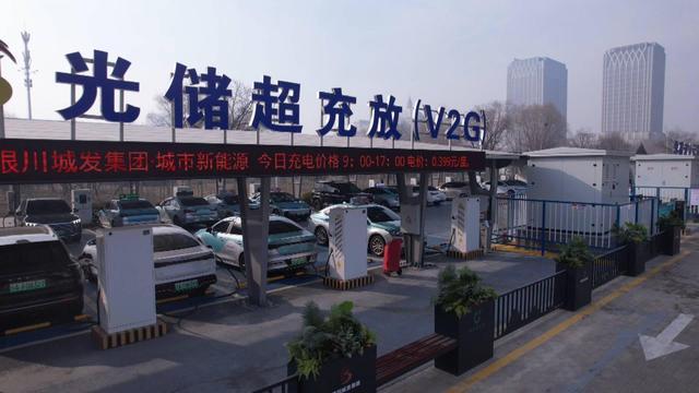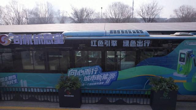 在银川国际会展中心新建成的光储超充一体站,停着一辆“退休”巴士,“司机之家”的贴纸在车头格外显眼。“在这看电视、打热水、吃泡面,都很惬意。”正在等待车辆充电的张瑞选择在“司机之家”临时歇脚,捧着热水起身,他的视野正好扫过充电站顶棚连片的蓝板,随口跟巴士上的工作人员搭话:“这就是太阳能板吧,看着真不少。”