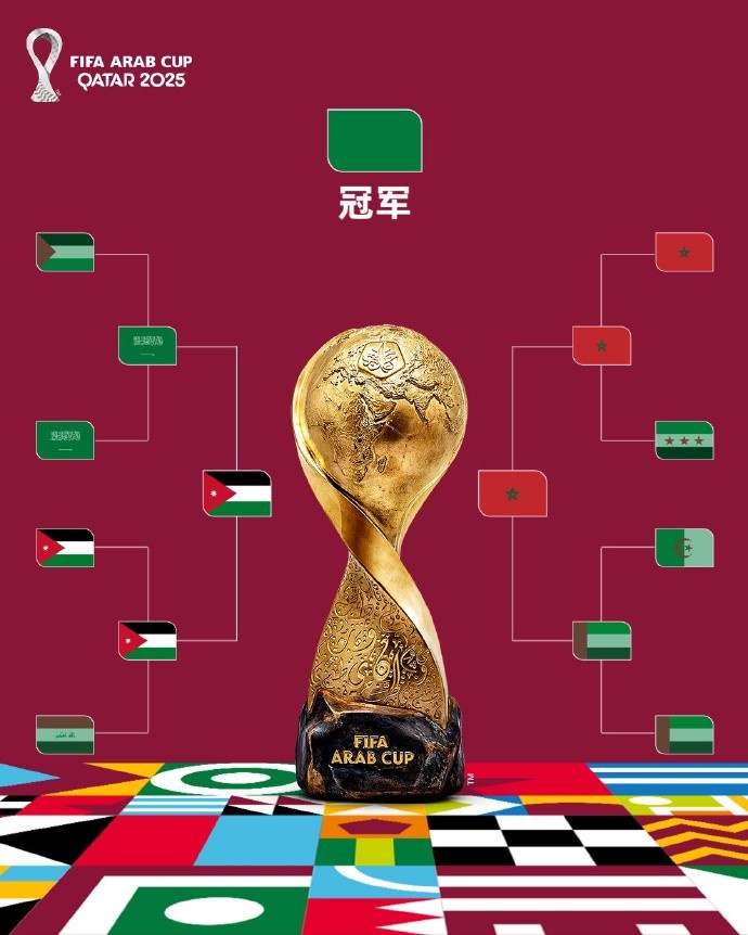 阿拉伯杯半决赛昨夜今晨结束争夺,约旦队1-0击败沙特队晋级决赛,他们将对阵3-0击败阿联酋的摩洛哥队,三四名决赛和决赛将于12月18日进行。