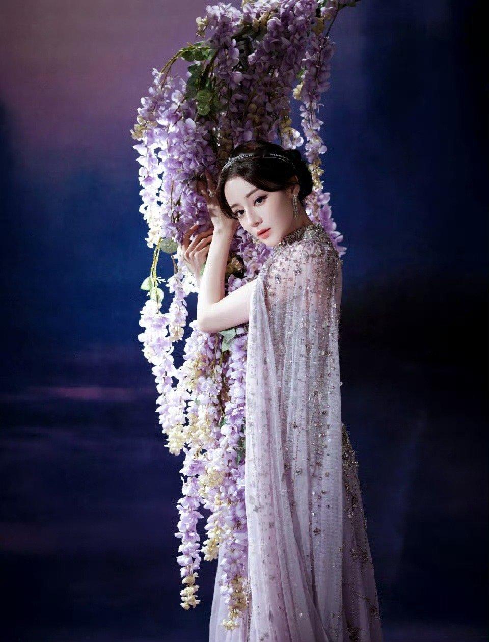 迪丽热巴紫藤花大片迪丽热巴发间流光造型 紫藤花秘境解锁!发间星芒流转,温柔氛围感直接拉满✨ 仙到失语~