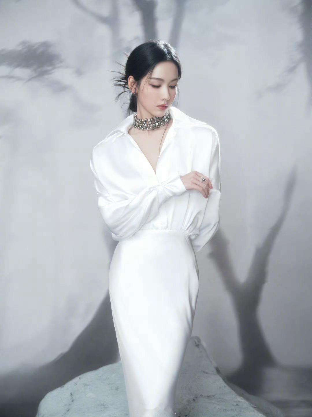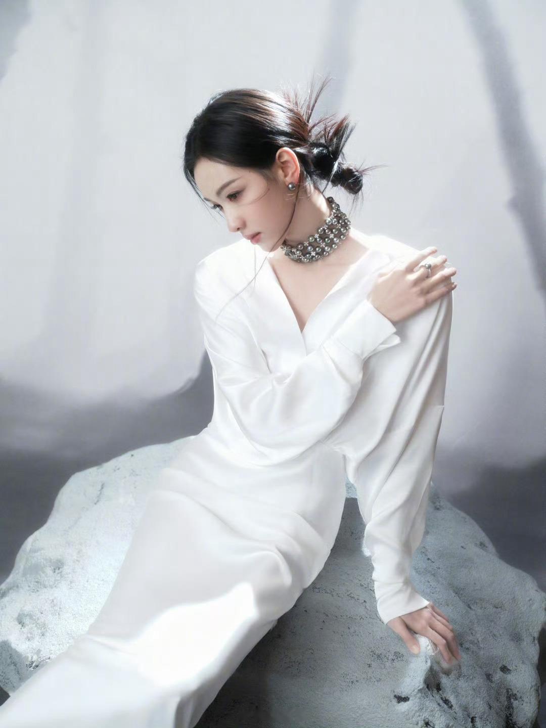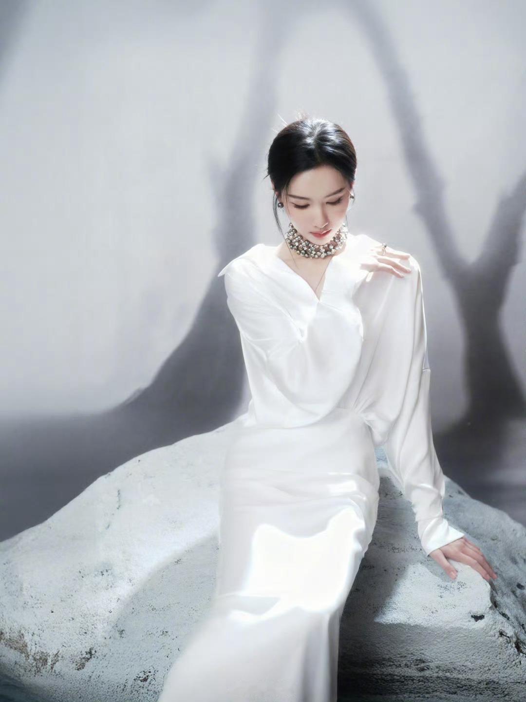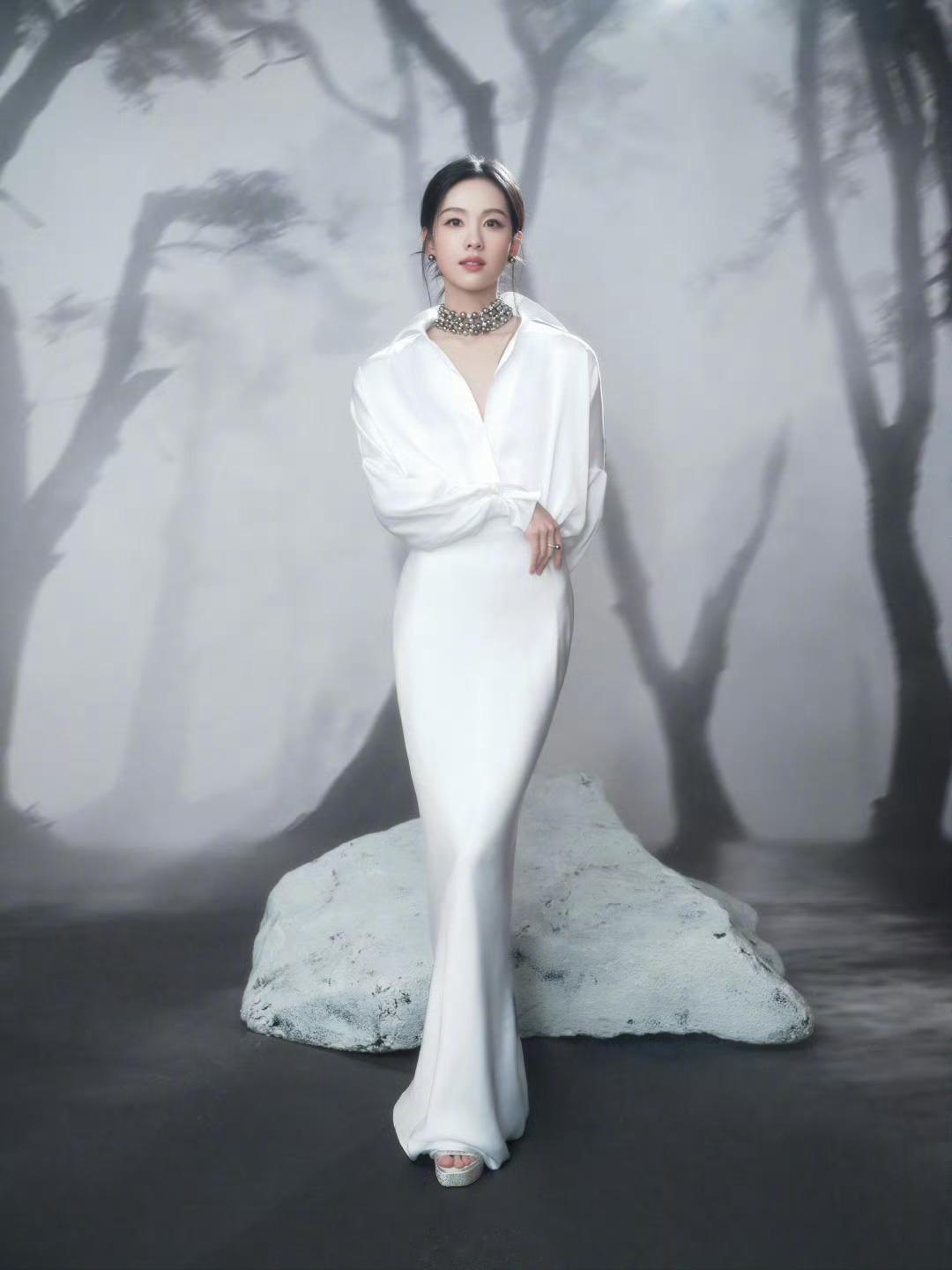 陈都灵国剧盛典白色礼服造型完全是天女下凡,好纯净圣洁
