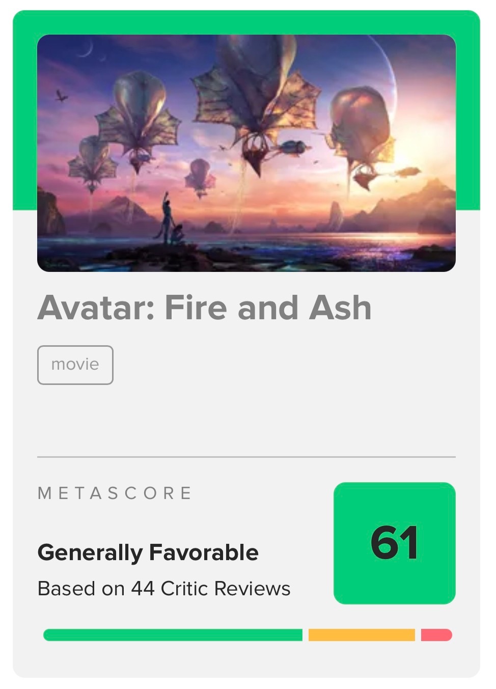 《阿凡达3》媒体口碑解禁,目前烂番茄新鲜度69%,Metacritic综合均分6