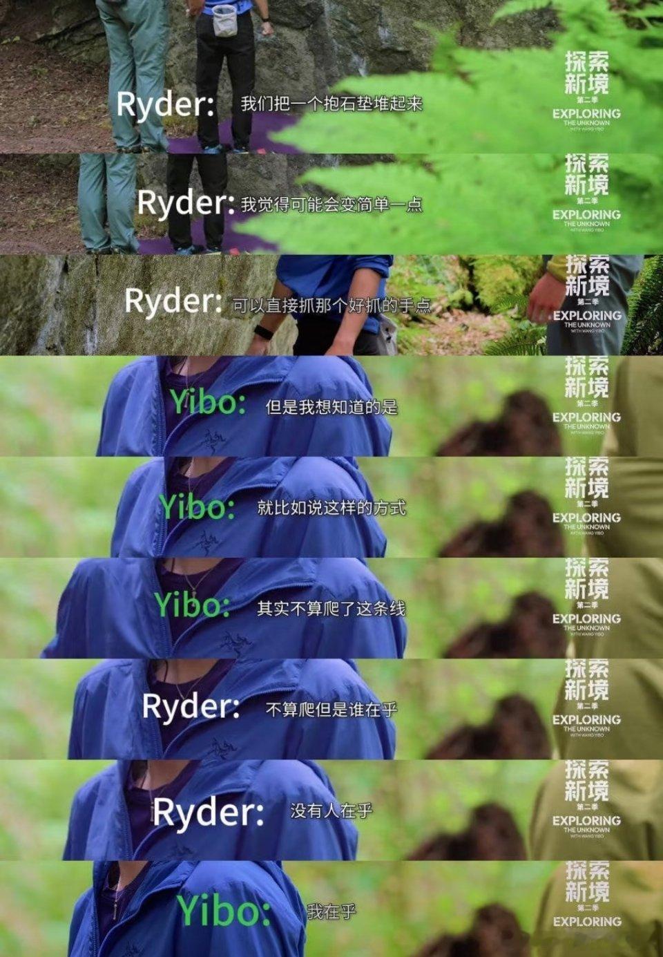 当瑞德建议用抱石垫堆起来,让起手更容易的时候,王一博问这样算爬了完整的这条线吗?瑞德:不算,但是谁在乎?王一博很干脆直接的回答说:我在乎!瑞德作为一个向导,肯定遇到过太多太多随便打.卡当完成任务把攀岩当时.尚.单.品的人,甚至欧美很多明星也把攀岩当人.设,但是他没想到王一博如此与众不同,不是表演给任何人看,也不想走捷.径,只关注自己能不能做好。王一博说失败了我就承认,我现在确实做不到,但我愿意花时间再做。他没有觉得呈现给大家的一定都要是完美的最好的,他会真实的告诉我们,他也有不会的,他也会害怕会失败,但他不会退缩,会一步一步努力证明给大家看,这难道不浪漫、不踏实吗?王一博 我在乎