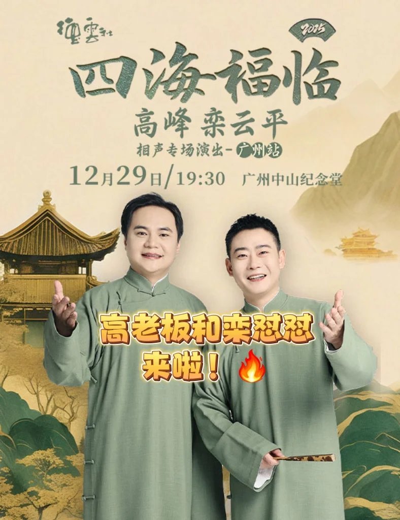 德云女孩 销声匿迹郭德纲认证“奔着老艺术家去的”黄金搭档来广州啦!不是流量噱头,是实打实靠功底圈粉的高峰&栾云平,这场传统相声盛宴错过真的会哭😭⭐️高老板不愧是德云社总教习,教科书级文哏功底稳到离谱,《绕口令》《数来宝》张口就来,每段表演都透着专业劲儿,踏踏实实的劳模风范太圈粉👏 搭档栾云平更是笑点收割机,清华毕业的“德云大管家”,冷面怼人自带萌点,被高老板叫“马凤英”“栾博基尼”时生无可恋的样子,承包全场笑点!👥两人合作十余年,默契直接拉满,传统相声信手拈来,包袱密集到让你笑到打鸣,全程无尿点超解压~ 没有花里胡哨的套路,只有原汁原味的相声魅力,不管是老粉重温还是新粉入坑,都能狠狠满足!沉浸式感受传统与现代碰撞的相声快乐,年末解压就靠这场啦,赶紧约上搭子一起放声大笑🎫📆演出信息▪️演出名称:四海福临 2025德云社高峰、栾云平相声专场-广州站▪️演出日期:12月29日 周一 19:30