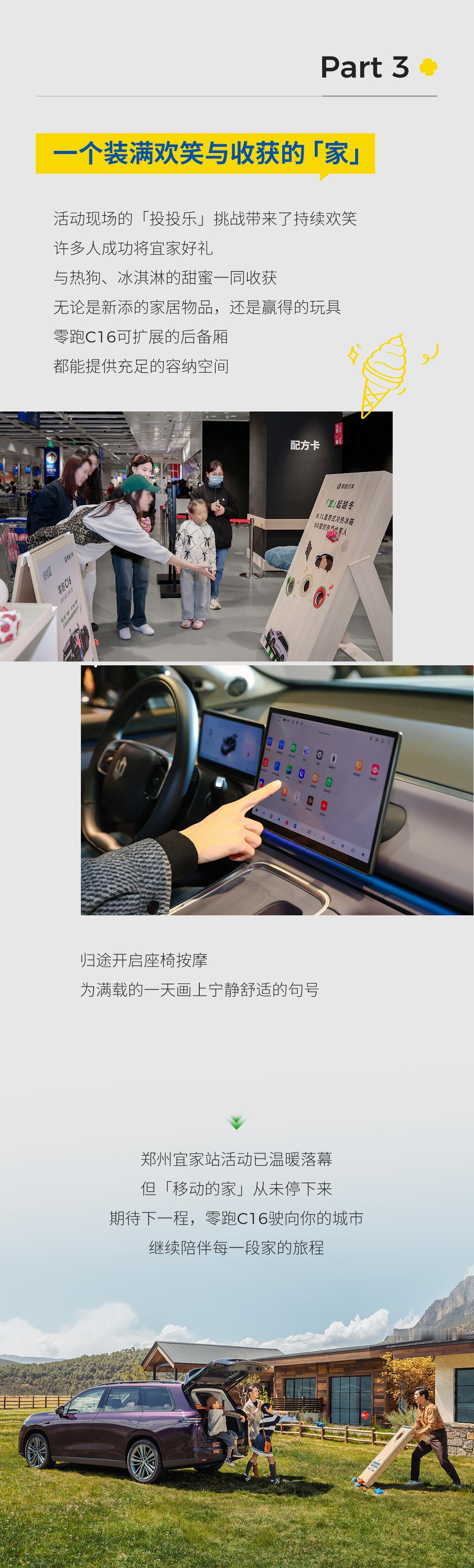 郑州宜家温暖收官,现场人气超旺!零跑C16「移动的家」吸引超多人打卡体验玩投投乐赢礼品、打卡免费吃冰淇淋热狗逛累了在C16移动超大床舒展休憩欢声笑语中,一天的疲惫都被治愈了左滑感受冬日热闹现场~评论区聊一聊,下一站你想在哪个城市偶遇TA?宜趣大空间 零动新体验宜家家居零跑C16就这么宜家