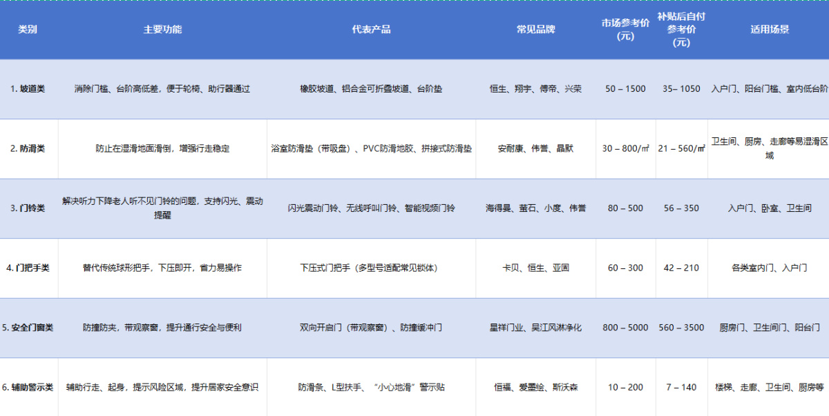 河南省适老化改造(地面与门)产品补贴指引表
