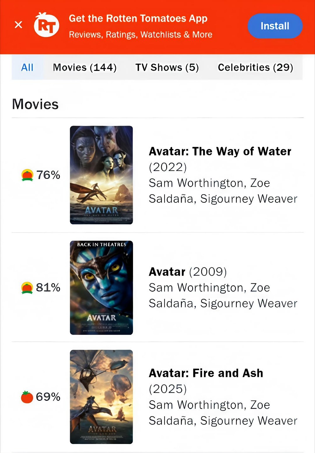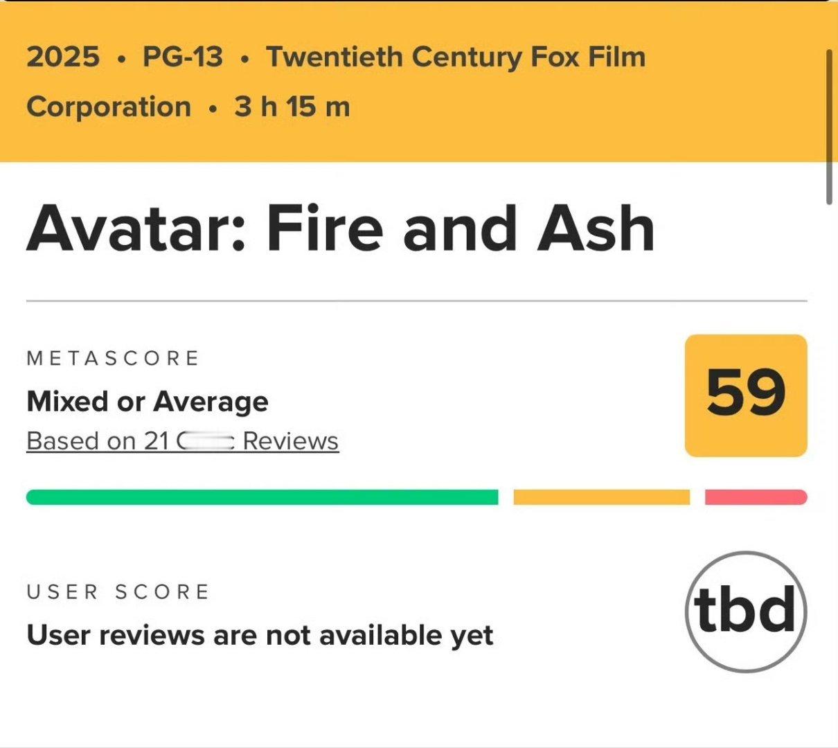 阿凡达3口碑系列最低阿凡达3北美口碑系列最低 《阿凡达3》北美口碑解禁,口碑也是最差的一部,不得不说这么多年过去,感觉大家已经对这个系列祛魅了。
