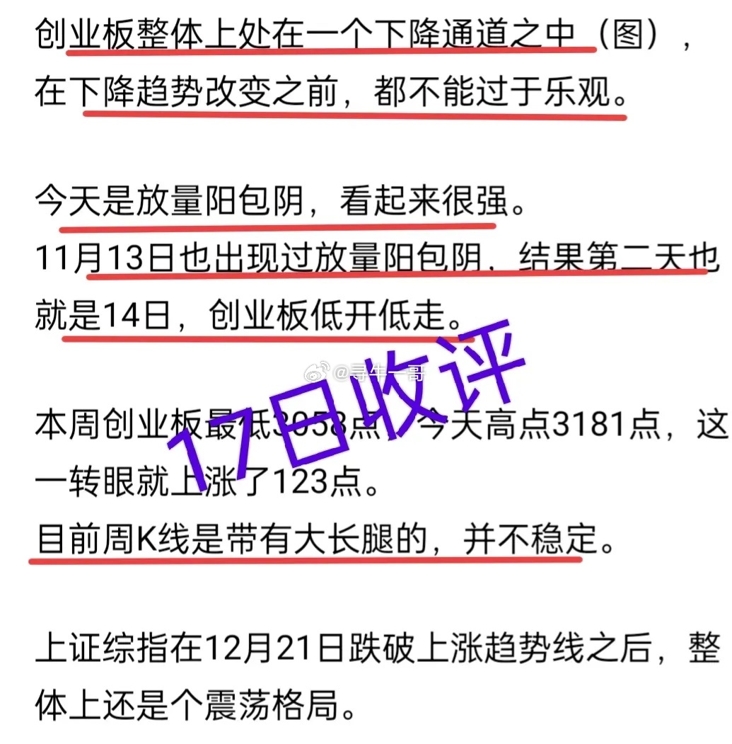 A股:一哥今天开盘前讲过,见好就要收一点!今天大盘缩量震荡,明天大盘或将再次考验三重底线3860点区域。1,中期均线是判断中期趋势的重要参考在大盘趋势未扭转之前,反弹就是反弹,短线操作,见好就要收一点!因为,我们面对的是翻手为云覆手为雨的量化!中期均线是判断市场中期趋势的重要参考,中期趋势转折主要看中期均线。创业板11月6日,首次出现了MA20均线下穿MA30均线。一哥11月6日提醒过创业板和深成指的风险(图)。那个时候,创业板还在3200点上方。MA20均线上穿MA30均线,且均线都已经趋于转折向上。通常认为,大盘就具备了中期上涨的条件。目前上证综指和深成指的20均线都还在30均线下方。也许有人会说,如果以后几天20均线上穿了30均线,那现在不是绝佳抄底机会吗?这话说的没有错,但那是“如果”,不具有相对确定性。2,大盘或将再次考验三重底线区域三重底线3860点一线,是一哥上周提到的大盘支撑区域。今天大盘3857点低开,最低3856点,也就是在三重底线区域。今天早盘前一个小时,大盘低开高走,最高到了3879点,之后的三个小时中,大盘基本上是横着走的,下午最高冲到了3888点。显然,这是大盘无力上攻的状态。既然无力向上,那么就存在向下寻求支撑的可能性。从短线来说,三重底线3860点一线区域就显得比较重要了(图)。守住了3860点一线,大盘短期内还有见到3900点的机会。否则,将再次考验3800点区域支撑。创业板不太好看。昨天盘后一哥就讲了,周线带有大长腿,不稳定(图)。3,趋势推演实际上,一哥希望大盘能攻击到MA30均线上方(目前位于3920点一线)。这样,就能确定3800点一线就是中期底部区域。大盘站上MA30均线之后,再来个第三次探底。在春季行情到来之前,把中期底部夯实一些。如此这般折腾折腾,明年上半年还能有不错的收获。个人观点,仅供交流,不构成投资建议!理财有风险,投资需谨慎!a股今日看盘股票大盘行情大盘分析行情大盘要跌吗