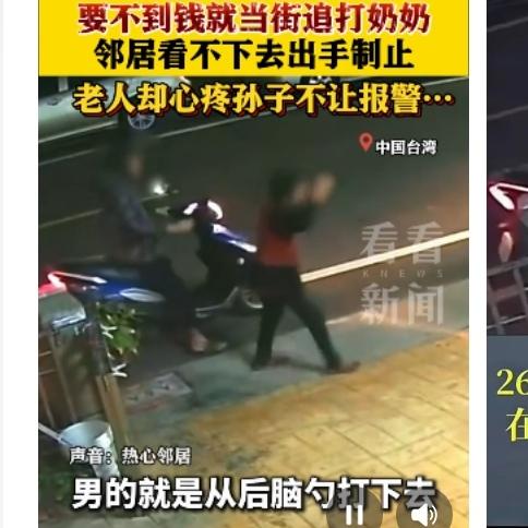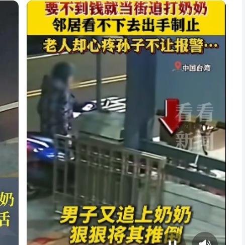 痛心!26岁孙子当街殴打失智奶奶 只因要钱上网被拒 台湾彰化县街头发生的一幕