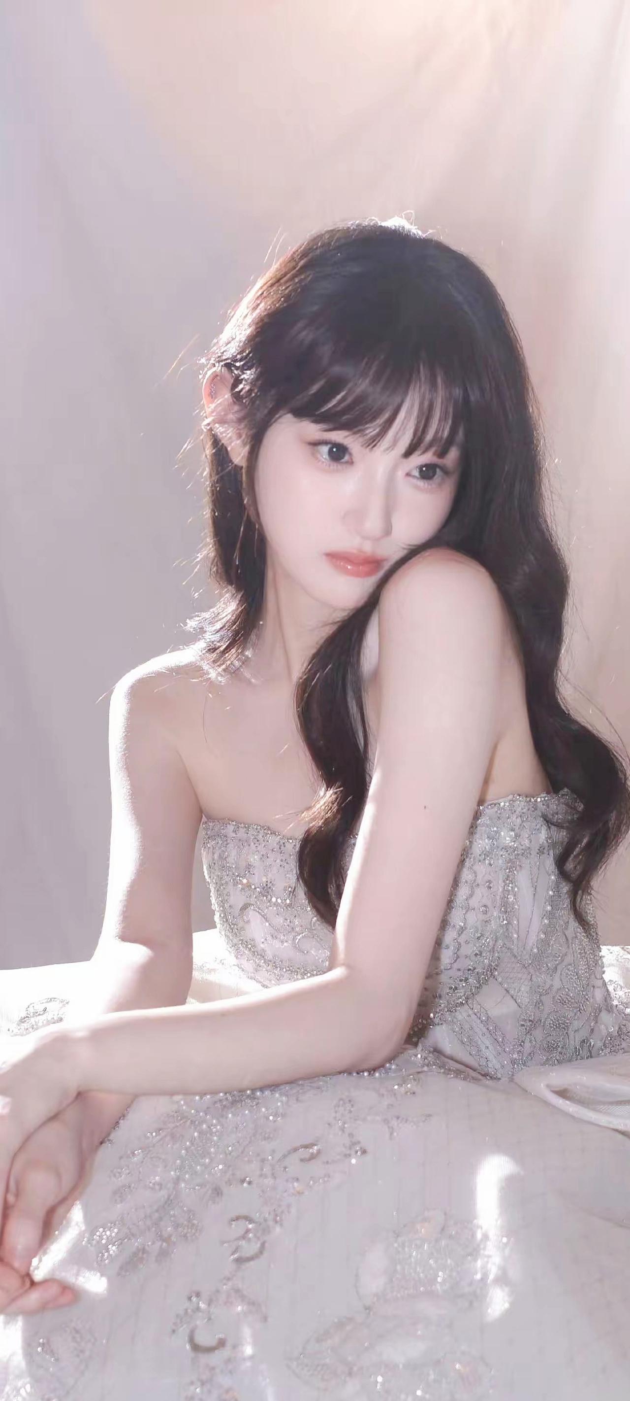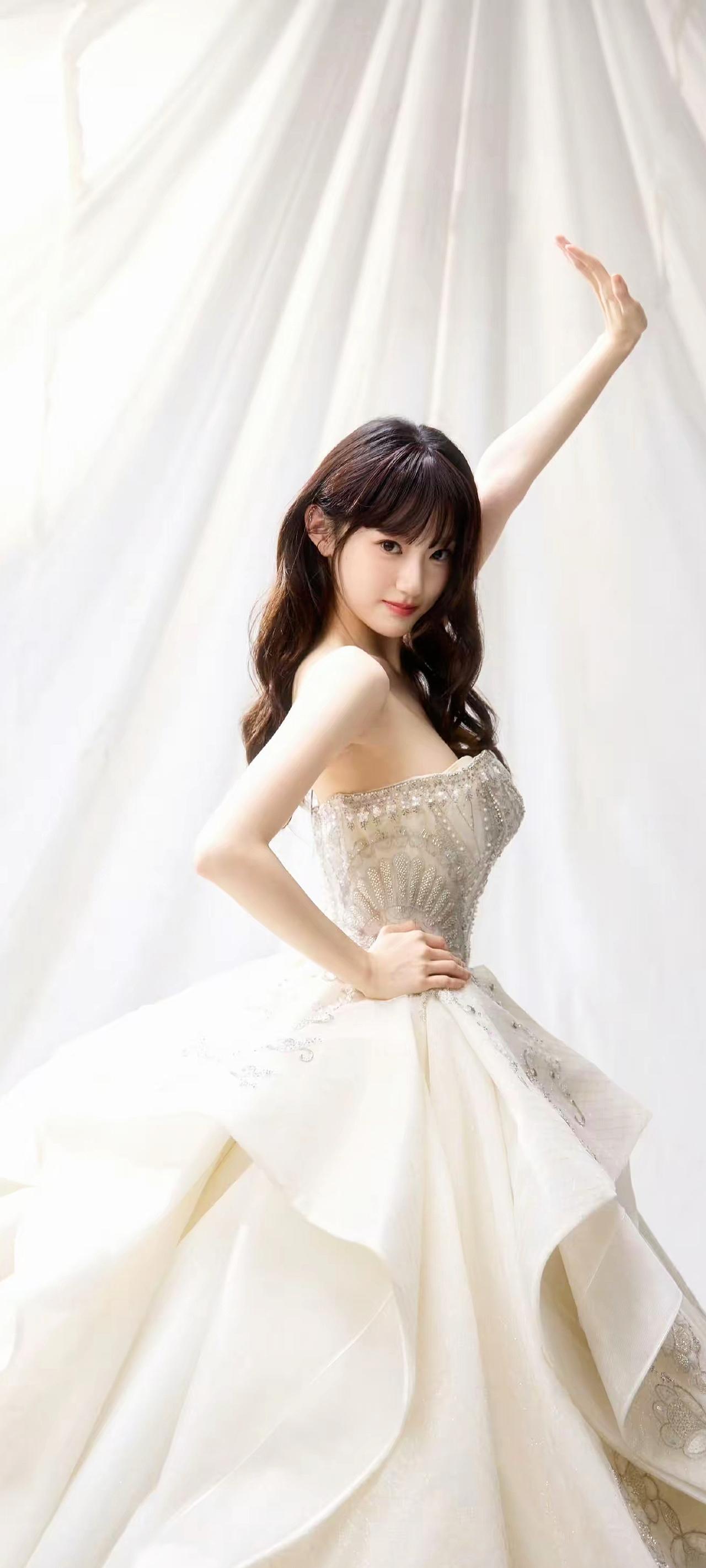 《白纱凝光》原创诗词 原创看图片配诗 珠钻凝霜缀白纱,香肩微露衬娇华。 鬓云轻卷含秋水,笑靥初开映晓霞。 一袭仙裙裁月色,半分倩影落桃花。 何须粉黛添颜色,自有清风拂玉芽。