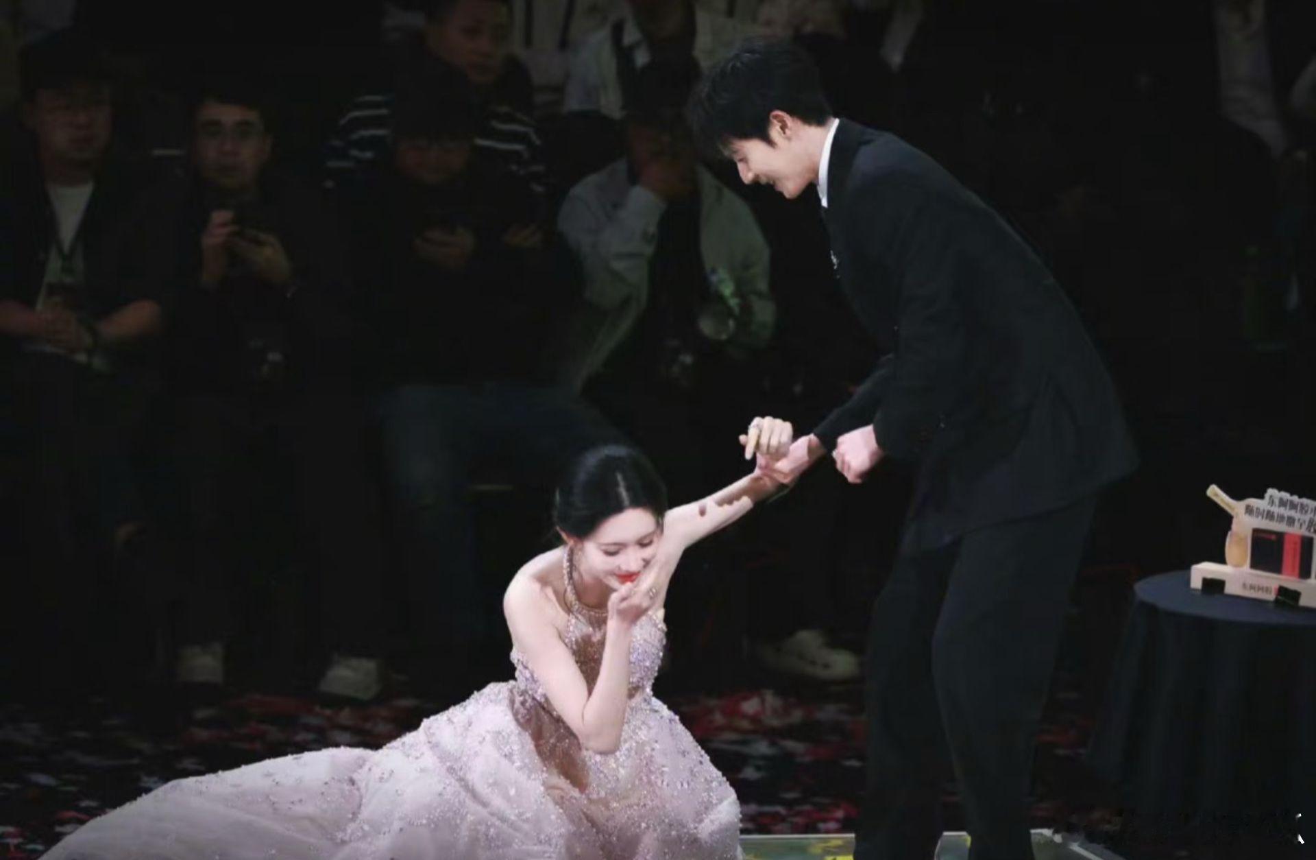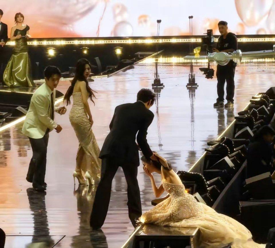 星光大赏的意外一摔,竟成了年度神图名场面。孟子义曳地长裙滑落的瞬间,姿态里藏着不经意的美感,可膝盖磕地的模样看着就揪心。隔着屏幕都能感受到李昀锐的慌乱,伸手搀扶时的急切藏不住真心。下次一定要小心呀,愿裙摆不绊脚,每一步都稳稳当当孟子义摔出了神图