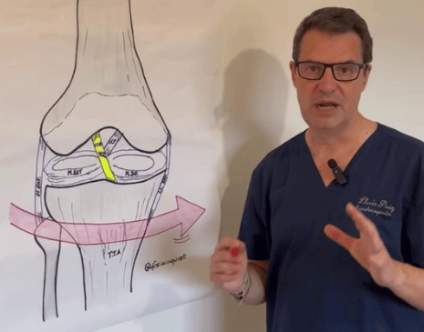 "他很可能是在膝盖内扣,即外翻时受伤的。并且是部分撕裂。保守治疗的目的是什么?让这个小裂口愈合(通常向后方移动,并与后交叉韧带形成良好的纤维愈合)。因此,此后为这个膝盖提供稳定性的显然将是后部肌群(腘绳肌和臀肌配合股四头肌),并且进行大量的本体感觉训练,使这个膝盖尽可能稳定,并为其恢复到原有比赛水平提供保障,"物理治疗师补充道。