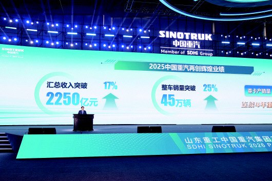 展望2026年,中国重汽将与各位合作伙伴共担目标、共拓市场、共享成果,携手实现产品、渠道、政策、品牌、服务、生态等全链条共赢,全力冲击国内整车销售34万辆目标,以更加紧密、更富韧性的“命运共同体”,为奋战“十五五”新征程筑牢坚实根基,为中国重汽跨越百年、全速迈向世界一流凝聚合力,共同开创中国商用车行业高质量发展更加美好的未来!(吴海云)