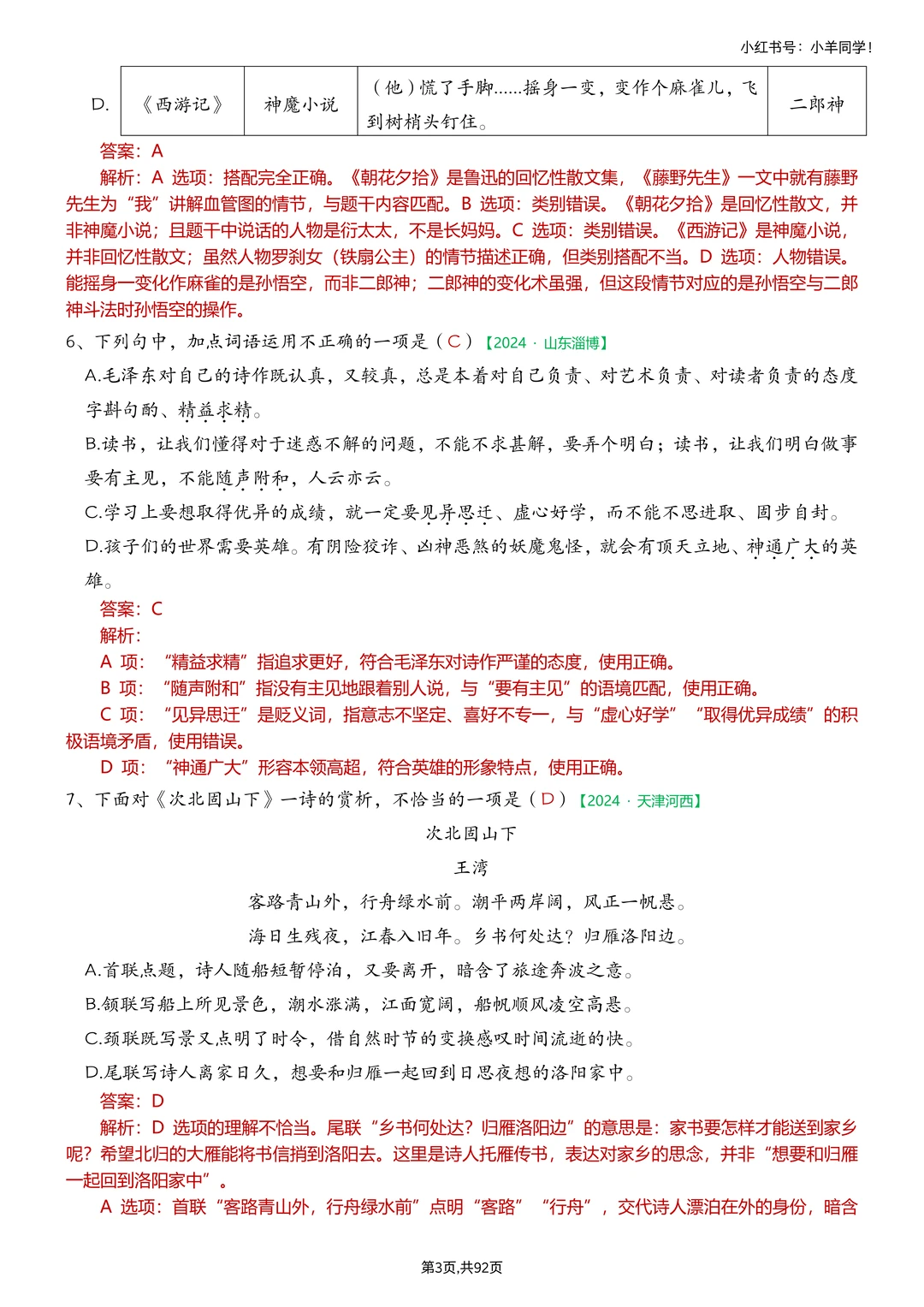 ▫️答案版 92 页:解析清晰,错题直接溯源