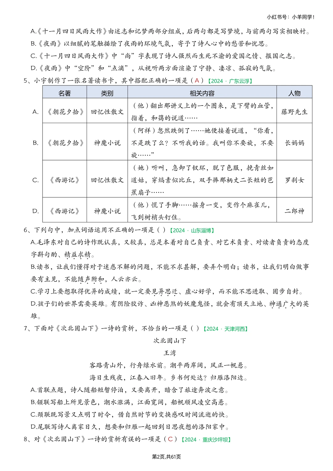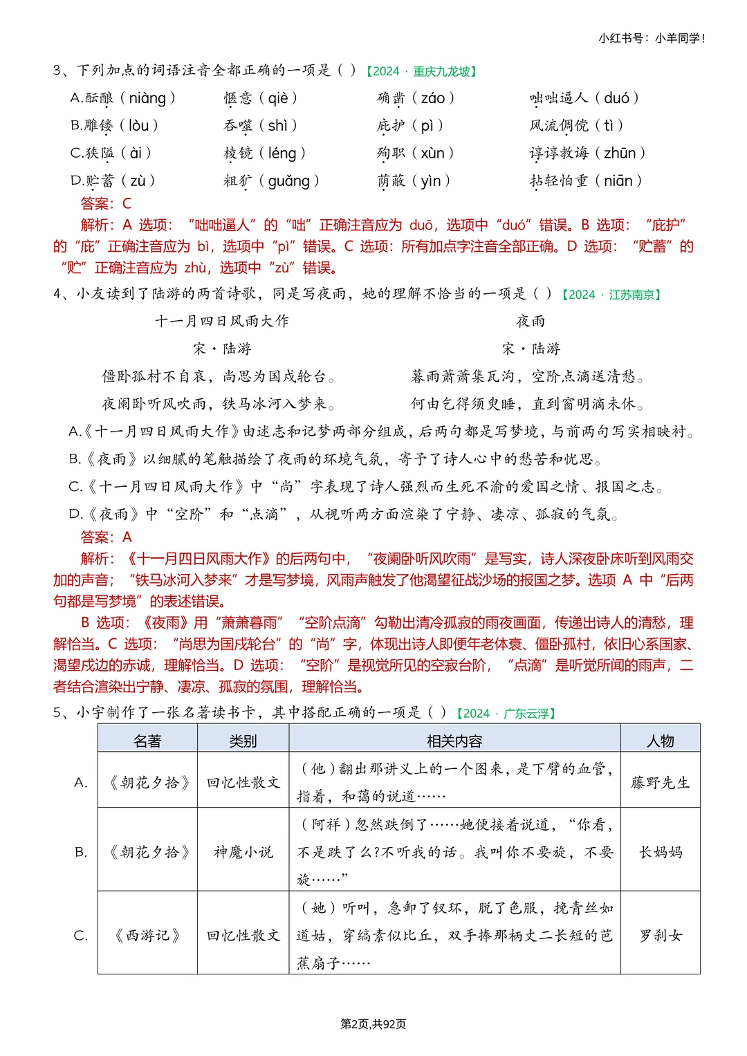 🎈从字音字形到病句、排序,从名著常识到诗歌理解,考点全覆盖,靶向性直接拉满💯