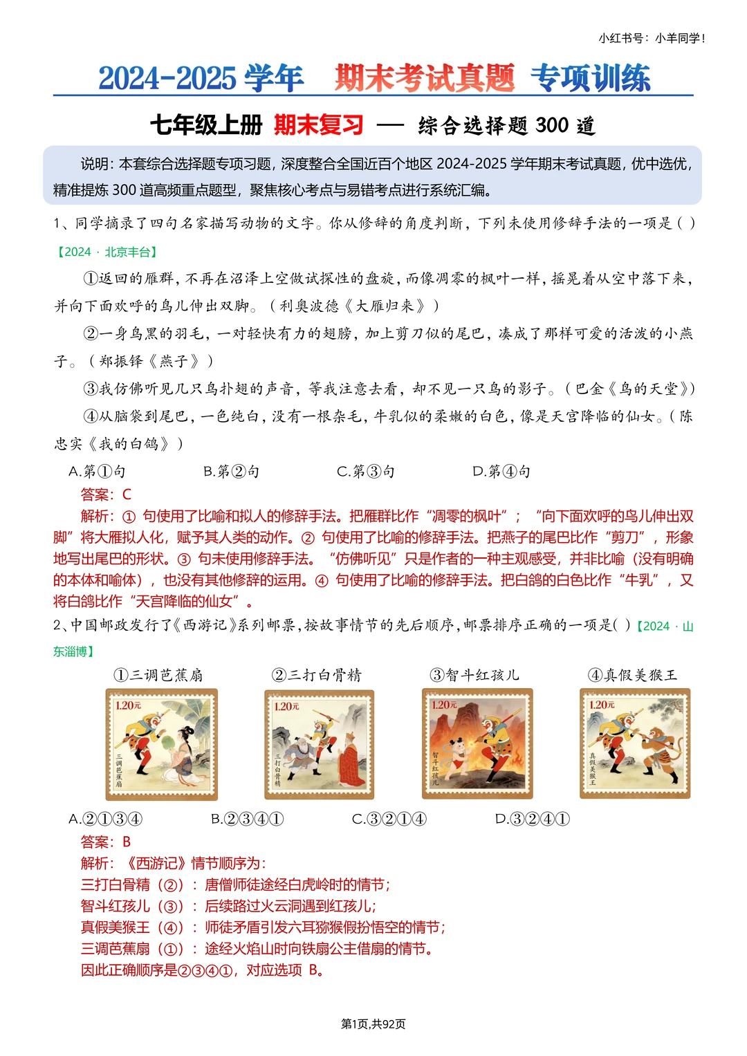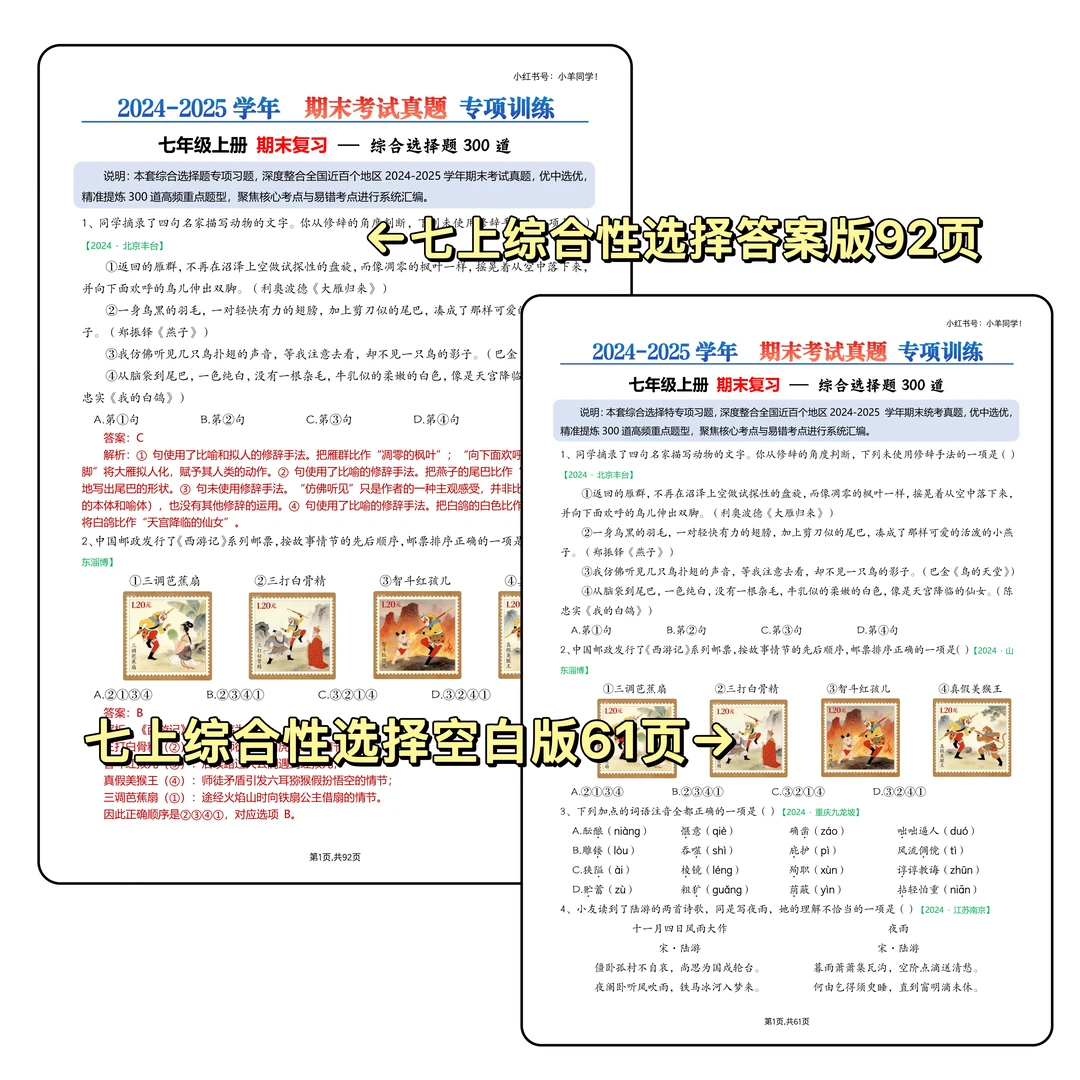 🎈初一党狂喜!300 道期末选择题真题s疯了