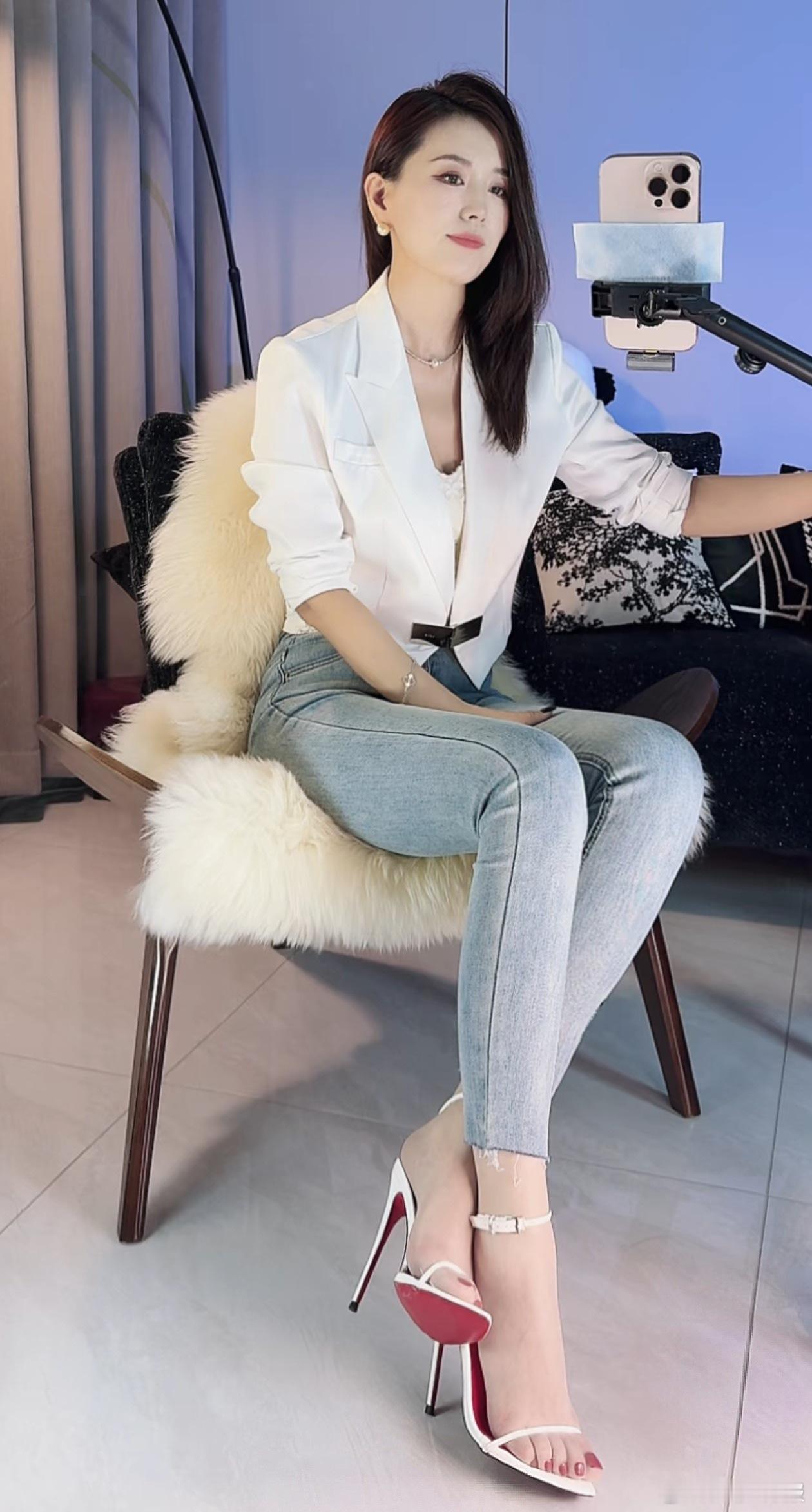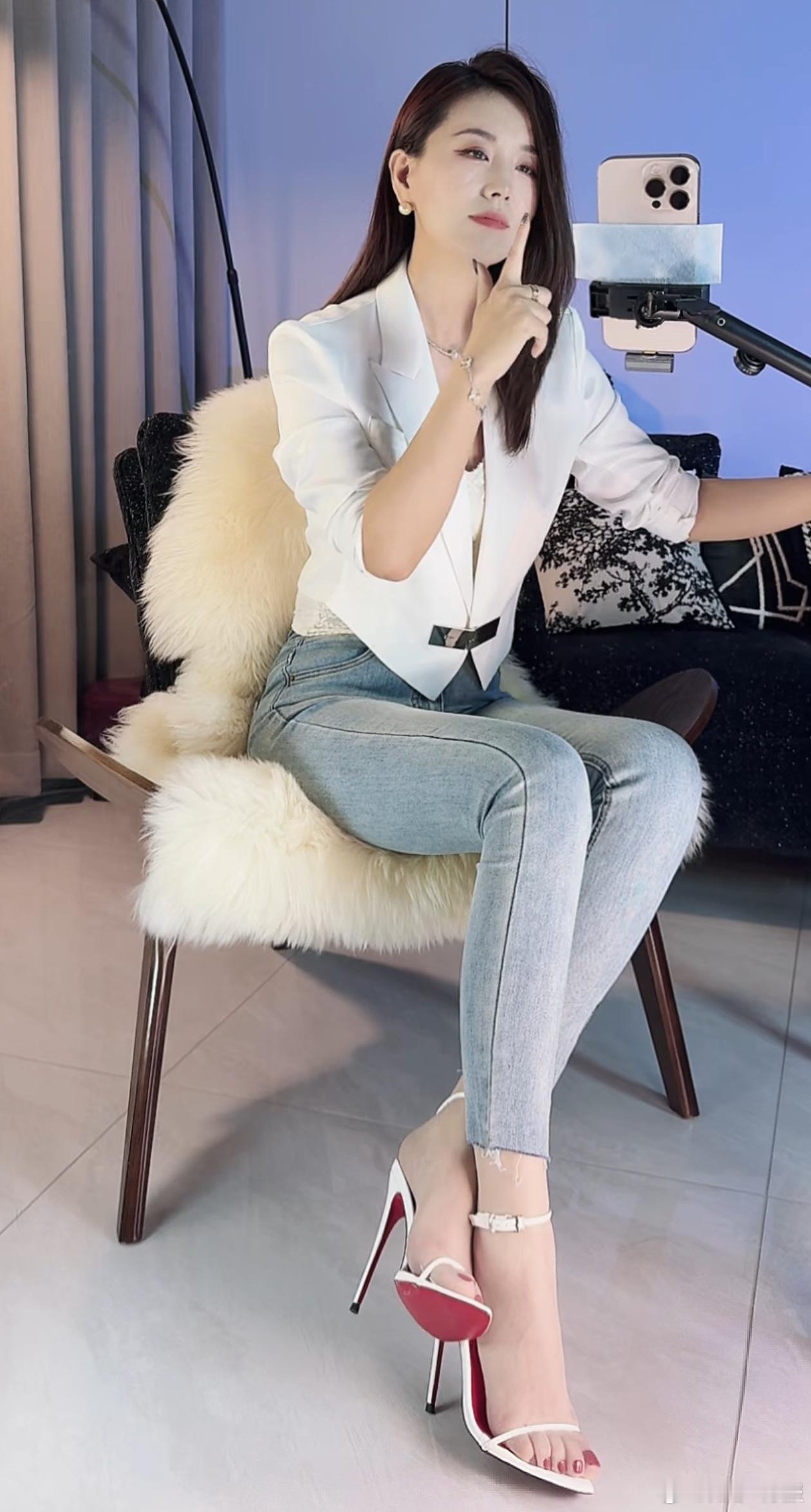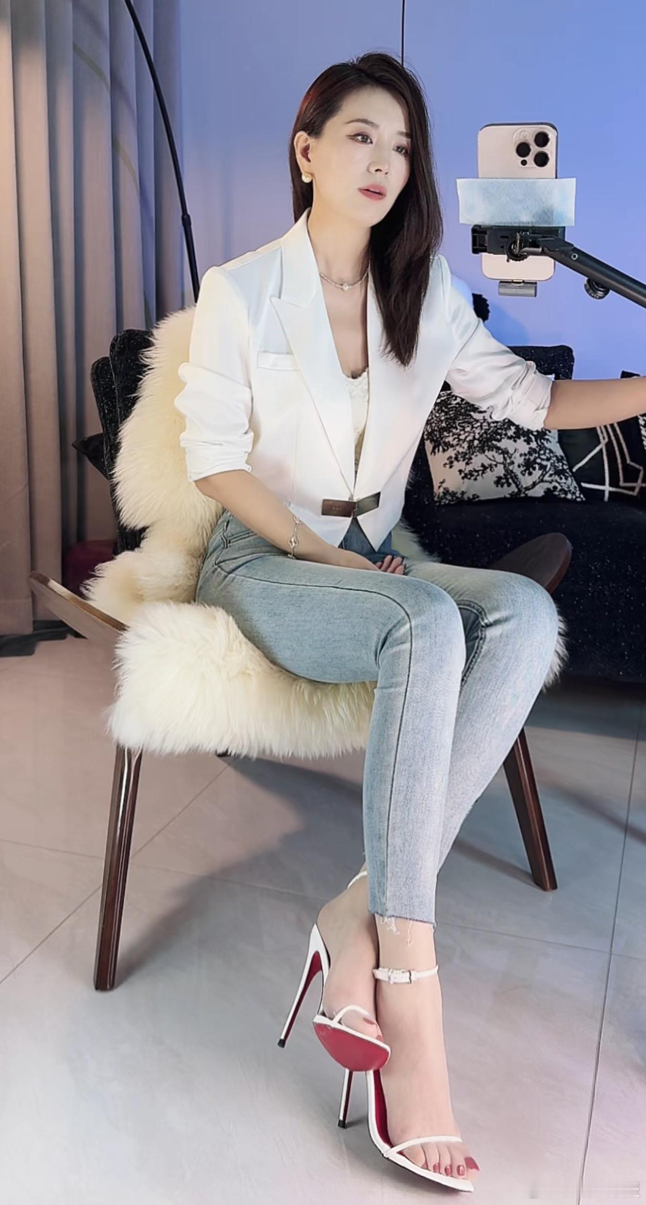秀儿紧身牛仔裤+一字带凉鞋+肉丝小脚脚