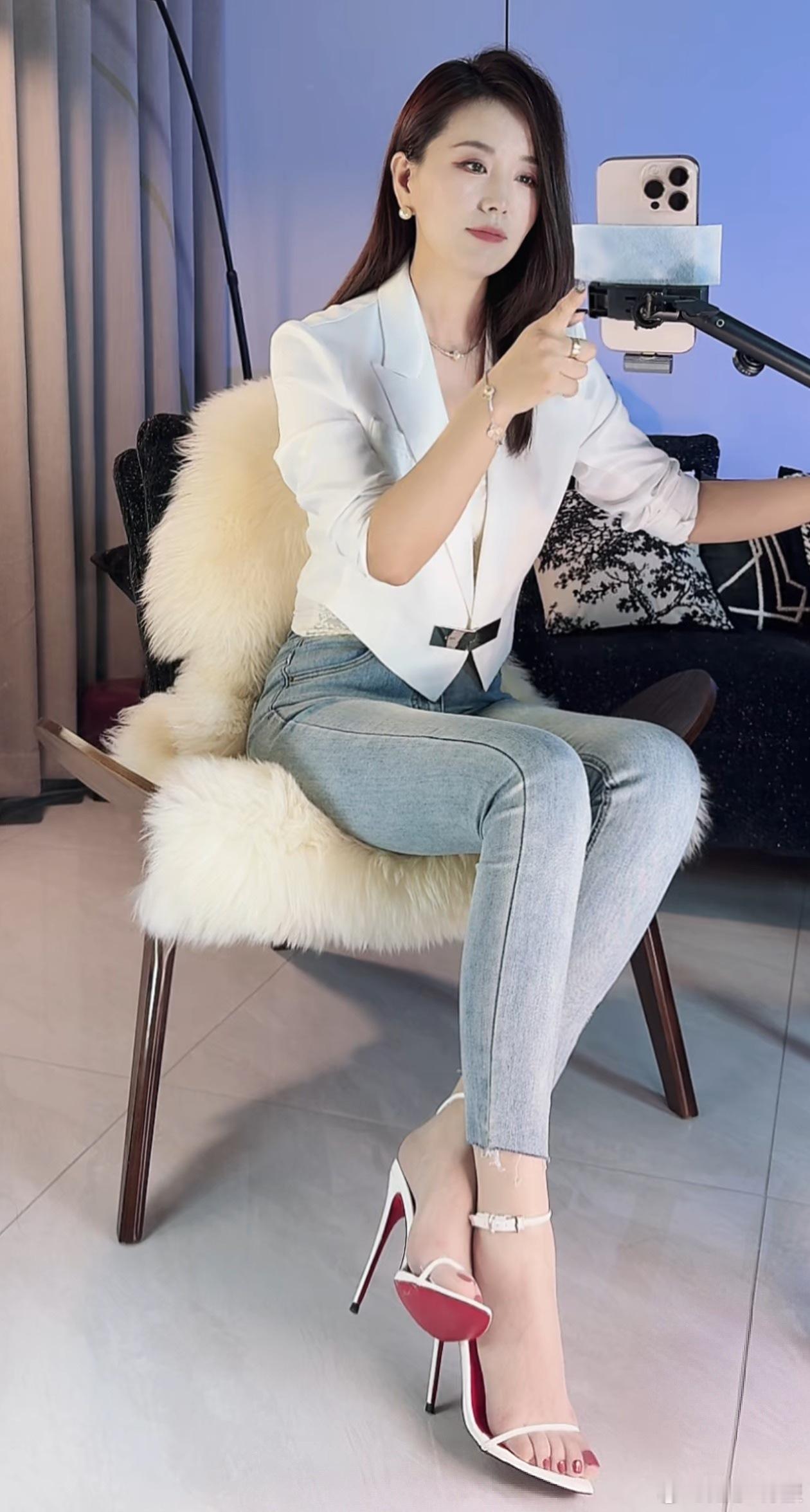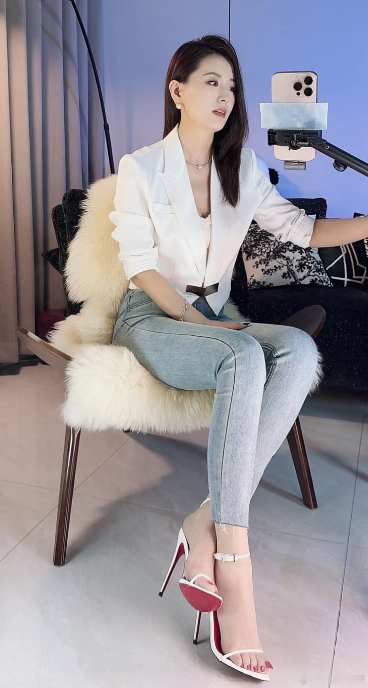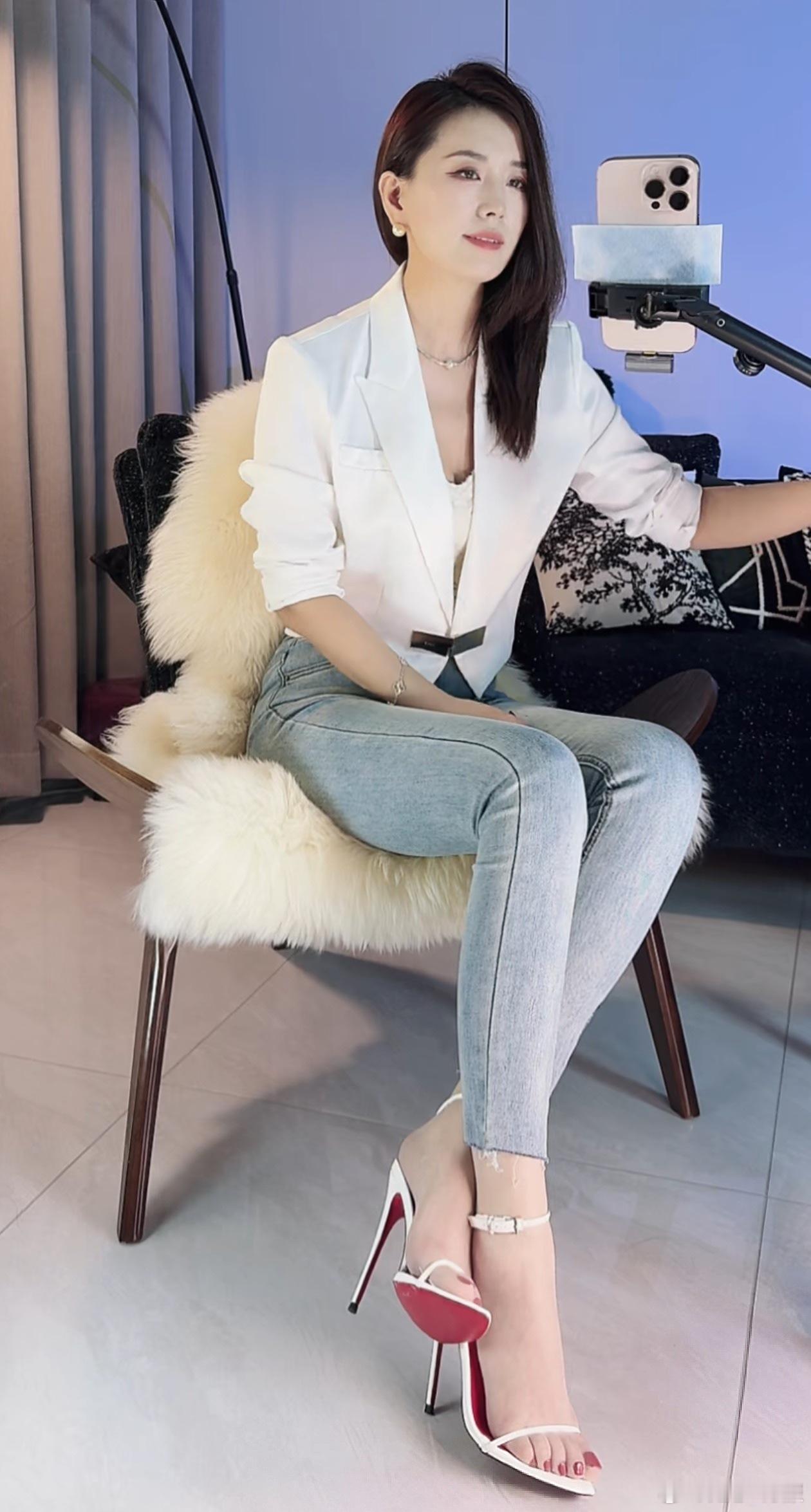 秀儿紧身牛仔裤+一字带凉鞋+肉丝小脚脚