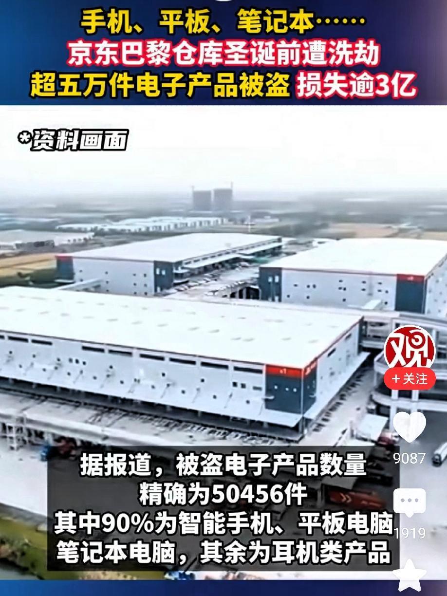 一夜被偷走了3个亿! ​欧洲0元购升级了, ​直接从仓库搬东西了! ​京东巴黎仓库就在圣诞节的节骨眼一晚上被偷走了3700万欧元! 这可不是小毛贼顺手牵羊,而是专业团伙的精准突袭。案发在12月22日凌晨,巴黎北郊的仓库大门被暴力撬开,监控和警报系统全被破坏,现场狼藉一片。 被盗的全是硬通货,50456件电子产品一夜蒸发,涵盖荣耀、OPPO的手机、电脑、平板和高端耳机,30个货盘被整批拉走,手法嚣张到令人发指。 京东23日晚间回应确认了盗抢事实,但否认了3700万欧元的损失传闻,只说实际损失有出入,仓库已快速恢复运营。 这伙盗贼的专业度让人脊背发凉,他们伪造物流车牌、用RFID写入器篡改标签,3小时就完成了整个作案流程,显然是提前踩点、周密策划。 案发地塞纳-圣但尼省本就是欧洲货运盗窃高发区,运输资产保护协会的数据显示,欧洲货运盗窃近三年暴涨438%,2023年欧盟货物损失就达5.49亿欧元。 巴黎的治安乱象早有定论,犯罪指数高达57.99,居民对被盗的担忧度超60分,地铁、景点小偷横行,如今连仓库都成了盗贼的“提款机”。 圣诞购物季本是物流旺季,仓库备货充足,高价值商品集中,却成了犯罪团伙的目标,这暴露了跨境仓储安防的致命漏洞。 更值得警惕的是,欧洲黑灰产早已形成链条,被盗商品会快速流入二手市场,加上多国法规差异,破案和追赃难度极大。 这起案件给所有跨境电商敲了警钟,光拼扩张速度没用,本地化安防适配和应急响应能力,才是海外立足的硬底气。 京东虽启动了应急措施,联动品牌冻结被盗设备IMEI码,但这起事件已让不少商家和消费者开始重新评估跨境物流的安全性。 所谓的西方文明,在盗窃团伙的嚣张行径面前不堪一击,“0元购”升级成“仓库搬家式盗窃”,本质是治安失控的必然结果。 各位读者你们怎么看?欢迎在评论区讨论。