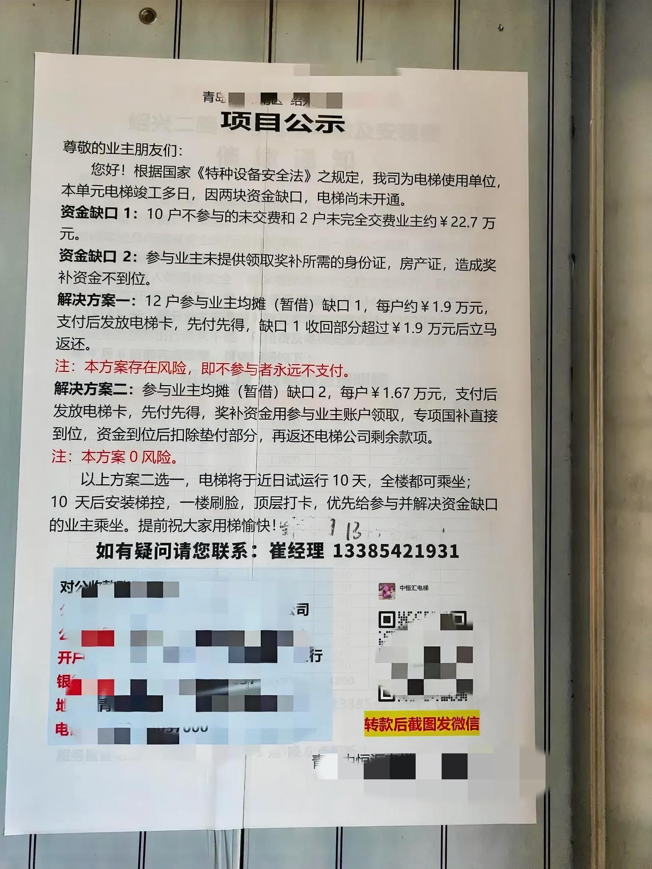 大家要搞明白,加装电梯不是一次性收取按装费就享用终身了,后续电费、维保、维修费用的收取是后患无穷的,收不齐,电梯停摆! 每年10元~20元的公共(照明、对讲门)电费及掏下水道费都收不齐,谈何几百元~几万元的电梯的费用,再说,早出晚归的上班族(租房户)和日常在家无数次上下电梯的一样均摊,没人愿意拿