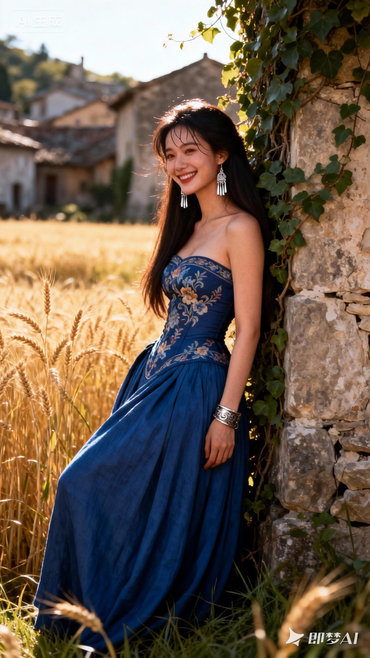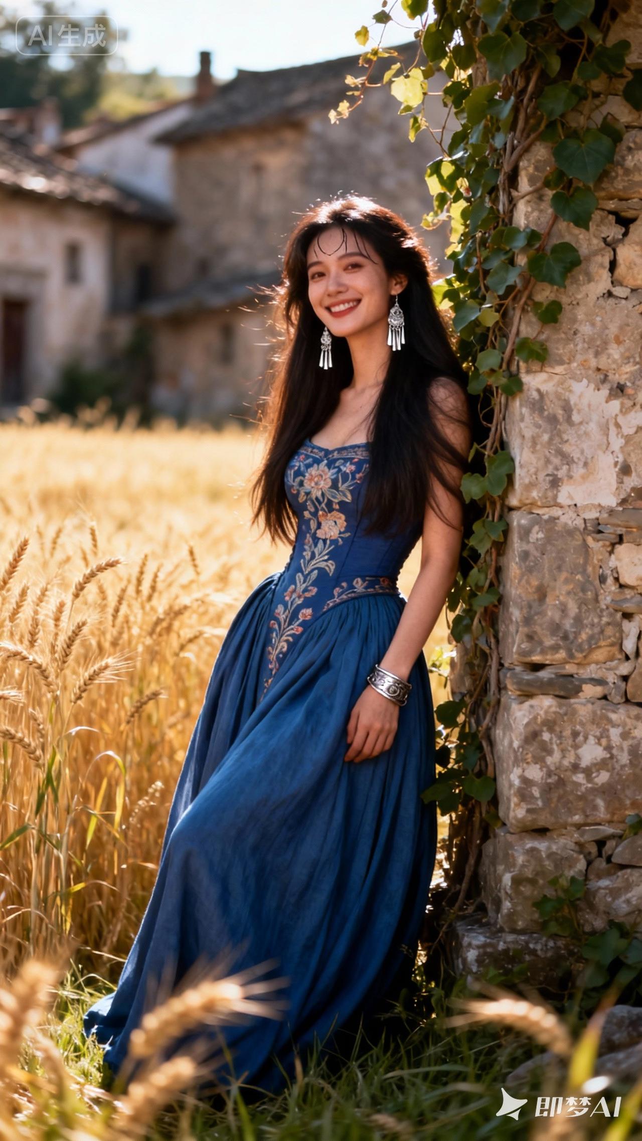 “蓝裙映日影,笑语入田间”,这画面太美了。让我想到清晨林苑中映日的荷花,那个红衣女子与莲花融为一体,而蓝裙少女在田间,也似一朵清新的花。 就像《诗经·周南·关雎》里君子对淑女的倾慕,田间的蓝裙少女或许也正吸引着某个人的目光。蓝裙在阳光下摇曳生姿,她的笑语在田间回荡。这场景,有着自然的清新,也有着纯真的美好,让人想起莲花“出淤泥而不染”的高洁,少女的纯真就如这田间的风景,干净又动人。