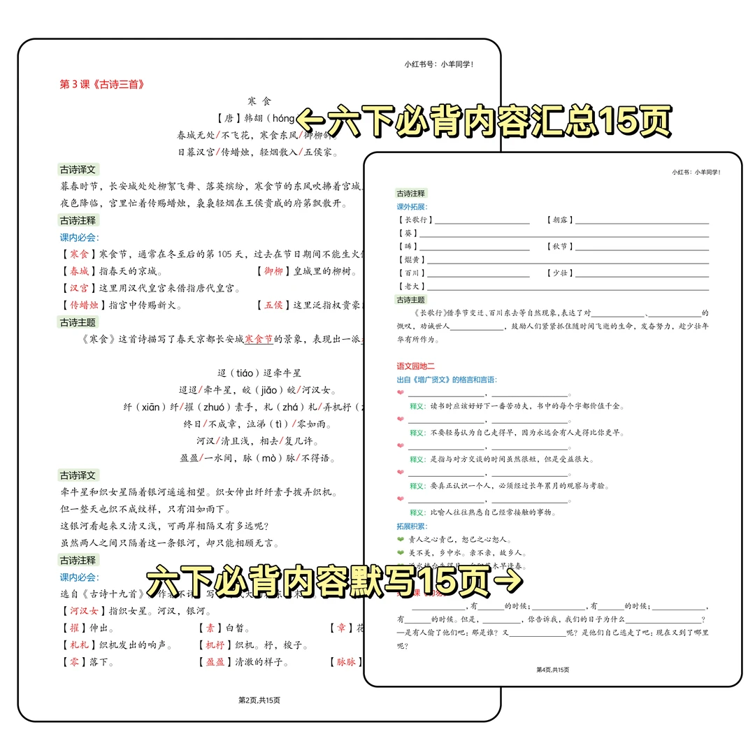 ⏳别小看这短短假期,六年级下册语文必背内容可是重中之重,而且内容特别多!!必须牢牢掌握!!!