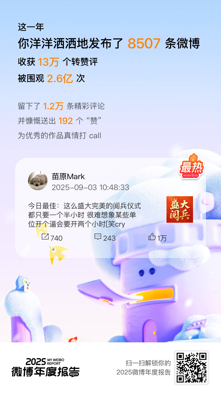 托你们的福,今年我保持金V成就193天 ,借你们的光,橙V保持了172天 !这份快乐也传递给你,速戳>> ,解锁你的微博年度总结吧!