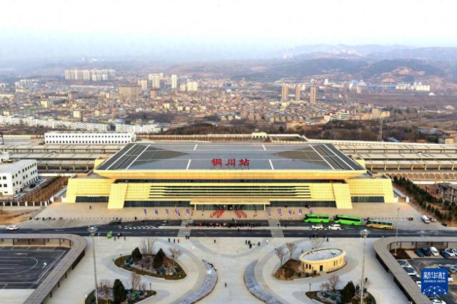 ▲12月24日拍摄的西延高铁铜川站(无人机照片)。新华社记者邢广利摄