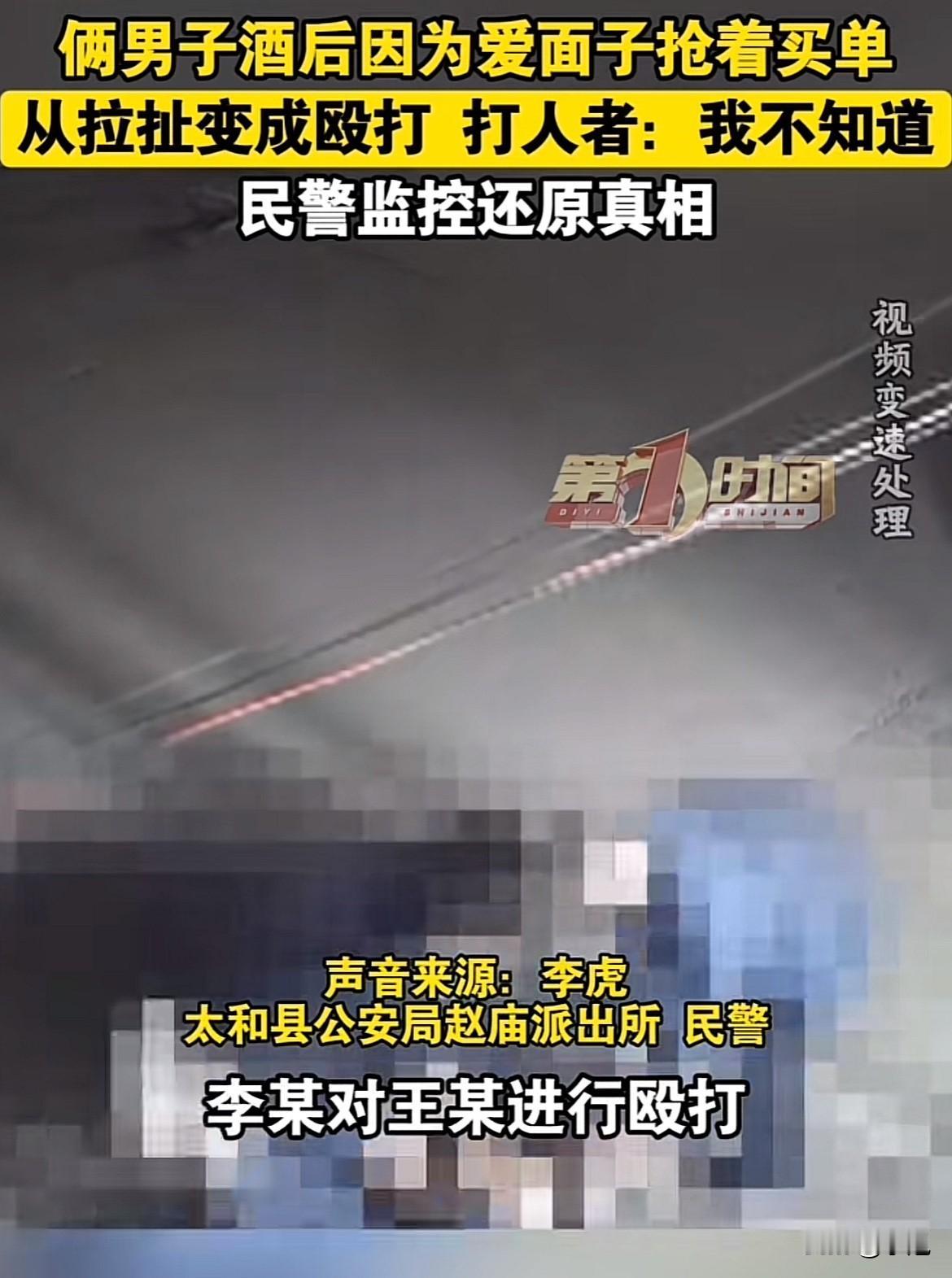 俩安徽太和县,王某和李某,一个村的邻居,本来关系应该不错。饭桌上推杯换盏,称兄道弟。结果酒足饭饱,戏肉来了——谁结账?两人都醉了,也都要面子,谁也不让谁。抢着付钱是好事,可抢着抢着就变了味。从言语拉扯,变成了肢体推搡。 据后来民警调查和监控显示,王某先多次拍打了李某的面部和身体。这一拍,就把事情拍出了格。李某觉得受了欺负,气急之下,挥拳还击。这一还手,力度没收住,直接把王某打倒在地,起不来了。 接下来的一幕更让人无语。打人的李某,竟然自己掏手机报了警。电话里他跟警察说:“自己被打了”。等民警火急火燎赶到现场,他还反复跟警察强调一点:“我这是正当防卫!你们不信?不信去调监控!” 他觉得自己很有理,拍打我,我还手,天经地义。 警察处理这种纠纷有经验,一边劝开双方,赶紧把倒在地上的王某送医院救治,另一边马上安排人,把现场的伤情和监控证据都固定下来。你喊调监控?那就依你,监控看得清清楚楚。 等第二天,酒彻底醒了,李某人也懵了。面对民警,他对自己的违法事实供认不讳,嘴里只剩下“后悔”。可后悔晚了,因为王某的伤情到底如何,成了决定此事性质的关键。目前,李某已被依法采取了刑事强制措施。意思是,这事儿已经按刑事案件的方向走了,接下来,就等王某的伤情鉴定。 如果鉴定出来,王某的伤构成轻伤或以上,那李某“故意伤害”的罪名就可能坐实,要负刑事责任,可不是道歉赔钱就能了结的。你看,从抢着付钱到可能面临判刑,中间只隔了几拳头的距离。 很多人可能跟酒醒前的李某一个想法:他先动的手,我还击,怎么不算正当防卫?这里面的区别可大了。法律上的正当防卫,是为了制止正在进行的不法侵害,核心是“正对不正”,自己是被动的、防卫的。 而像这次的事,从争吵到互相拍打推搡,事态是在双方参与下一步步升级的。如果一方在被打后,还击的力度和方式明显超过了必要限度,比如对方只是徒手拍打,你却用重拳将对方殴打至倒地不起,这就很容易被认定为“互殴”,也就是“不正对不正”。李某的还手,就被警方认定属于这种情况。 所以说,冲动真是魔鬼,尤其是灌了酒之后的冲动。一顿饭,几百块钱的事,最后搞到要警察上门、医院验伤、甚至可能法庭相见。俩邻居以后在村里怎么见面?这面子,是挣着了还是丢尽了? 这件事也给所有人提了个醒:酒桌上,量力而行;有争执,退一步海阔天空。你觉得是在争面子,法律看的却是行为的结果和性质。监控不会说谎,它拍下了你如何动手,也拍下了你如何从“有理”变得“有罪”。