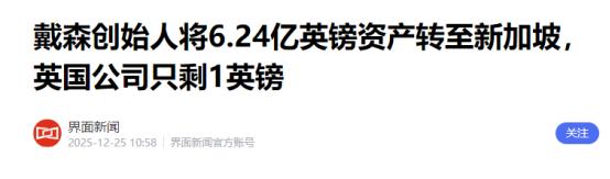 只给英国实体留下了一英镑,向新加坡转走了6.24亿英镑。 詹姆斯·戴森,英国首富,戴森公司创始人。近日把家族公司财富,作调整,家族投资公司做了上述事情。   根据韦伯恩集团的备案文件,这场大规模资金转移不是一下子完成的,而是分阶段推进的。2025年3月,集团旗下主要英国实体先向新加坡母公司返还了2420万英镑股本。   到了12月,又进一步撤回6亿英镑,两次操作加起来完成了6.24亿英镑的资产转移,最终让英国实体的账面资本缩水到象征性的1英镑。与此同时,韦伯恩集团还按计划关闭了两家负责英国房地产投资的子公司。   其中一家在12月关闭前,以2640万英镑的价格把房地产投资所有权转让给了新加坡实体。另一家位于格洛斯特郡庄园的房地产公司,则将资产转让至戴森名下的农业企业,相当于彻底清空了英国本土的核心非业务资产。   韦伯恩集团是戴森家族专属的财富管理平台,这波操作绝不是临时起意。该集团成立于2013年,是全球体量最大的家族办公室之一。2019年披露的管理规模就有45亿英镑,投资范围涵盖农场、葡萄园、商业地产、风投基金等多个领域。   目前它在伦敦和新加坡有70多名员工,三年前还在新加坡设立了保险部门,专门管理财务风险。今年8月,集团迎来首位女首席投资官简·辛普森。   这位牛津大学毕业、曾任职于欧洲私募巨头旗下机构的高管,上任后就加速了亚洲布局。近几周更是在新加坡发布多个招聘岗位,计划组建新团队支撑多资产投资组合管理,显然这场财富转移是集团长期战略的落地。   戴森之所以坚定把财富重心向新加坡转移,核心原因是其业务布局早就“脱英向亚”了。公开数据显示,戴森公司90%的市场都不在英国,以中国为主的亚洲市场,长期以来都是它全球营收的核心支柱。   詹姆斯·戴森甚至一度被称为“中国女人买出来的英国首富”。回溯戴森的亚洲扩张史,早在2004年,其产品就进入了新加坡市场。2012年在新加坡西部建起首个自动化工厂,2019年更是直接把全球总部从英国伦敦迁到了新加坡。   如今新加坡已成为戴森的全球运营核心,不仅有领导团队驻扎,还承载着供应链、制造、财务、研发等关键职能。员工规模也从2007年的10人,增加到现在的1400多人。   中国市场曾是戴森的“增长引擎”。2016年戴森推出首款高速吹风机后,凭借11万转/分钟的无刷电机技术和时尚设计,迅速占据国内高端市场80%的份额。   当年它在中国市场的营收增长高达244%,2018年营收突破百亿大关,2019年中国市场贡献了其全球最高销售额。巅峰时期,每卖出100台吹风机,就有近30台是戴森。   不过近年来,随着国产品牌崛起,戴森在华市场份额有所下滑。2024年上半年,其高端吹风机线上份额已跌至7%,跌出销量排行榜前六。但即便如此,以中国为核心的亚洲市场,仍是戴森无法替代的营收支柱,这也是它不愿动摇亚洲布局的关键。   新加坡自身的金融优势,为戴森的财富转移提供了绝佳土壤。作为全球第三大财富管理中心和外汇交易中心,新加坡有宽松的外汇管制、10%的离岸所得税率等优惠政策。   它还签署了全面避免双重征税协定,加上政局稳定、币值平稳、司法体系完善,成了跨国企业布局资本的优选之地。更重要的是,新加坡地处马六甲海峡咽喉,东八时区的地理位置能衔接伦敦与纽约的交易时段,实现24小时金融运作。这对戴森的全球资本调配至关重要。   此外,新加坡政府对高端制造和科技创新的支持,也和戴森的发展需求高度契合。戴森不仅在新加坡建了新一代电池工厂,还计划扩招250名工程师和科学家,深耕AI、机器人等前沿领域。   值得注意的是,戴森的这一系列布局已获得新加坡官方认可。詹姆斯·戴森曾被新加坡总统授予“公共服务星章”,以此表彰他对新加坡经济的贡献。   从商业逻辑来看,戴森2025年承诺每年向韦伯恩集团支付2.25亿英镑股息,扭转了近年分红下滑的趋势。   此次把财富转移到新加坡,既能更便捷地对接亚洲核心市场,又能借助当地的金融优势优化资本管理,无疑是兼顾业务发展与财富增值的理性选择。   全球家族企业战略专家马丁·罗尔也指出,这些变动很可能是戴森家族长期接班规划的一部分,是着眼未来的长远布局。   从迁总部到转移核心财富,戴森的每一步操作都在印证“业务在哪,资本就去哪”的商业规律。对戴森来说,英国本土不足10%的市场占比,早就支撑不起它全球财富的核心布局。