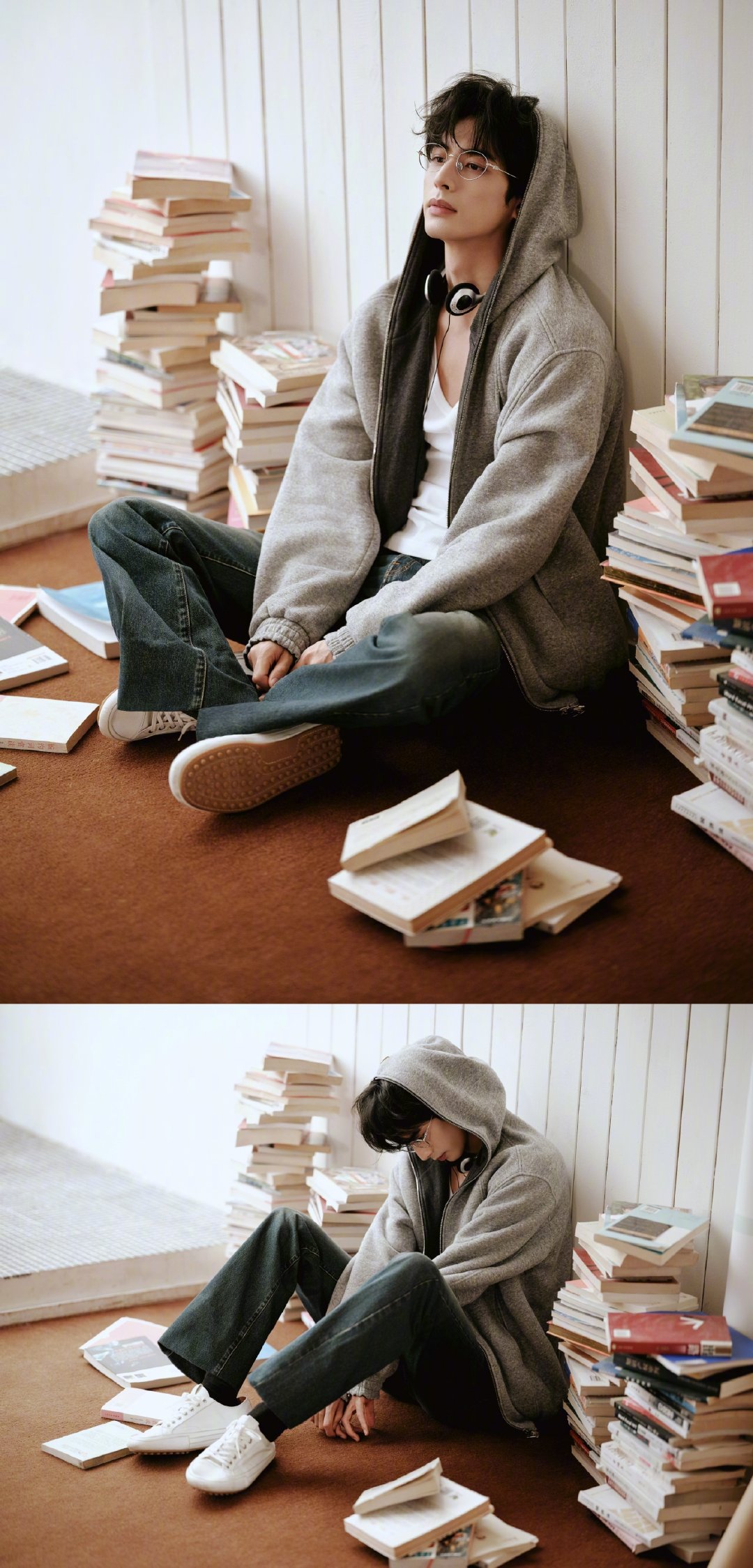 宋威龙 LONGstory见面会造型图,连帽卫衣配牛仔裤,再戴上黑框眼镜,随性自然的氛围,还是那个俊朗清新的少年。
