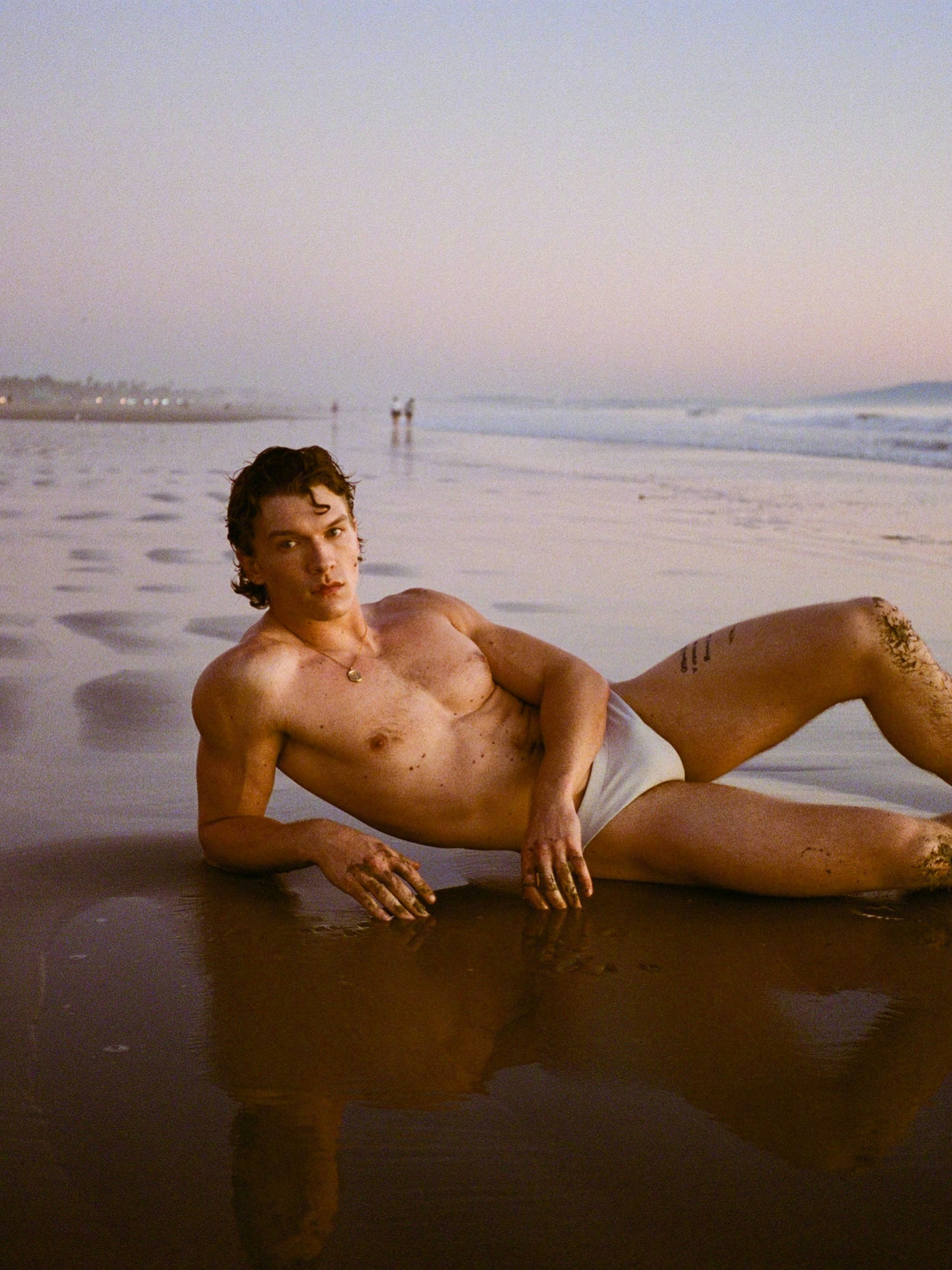 Connor Storrie 热剧Heated Rivalry巅峰对决的男主,一组CULTURED杂志海边大片,穿着一条泳裤出镜,大方秀他的性感身材。🌅📸🦞