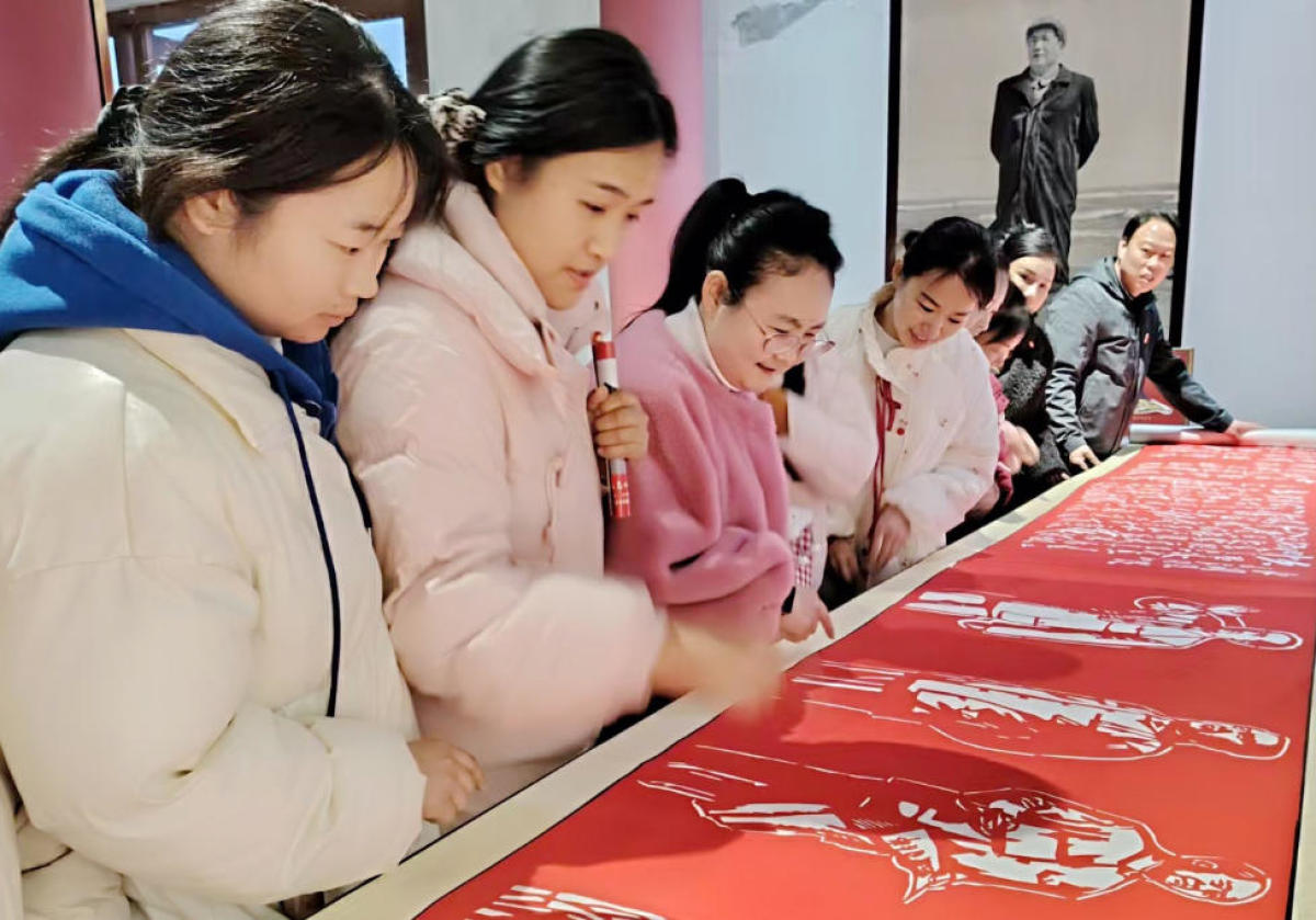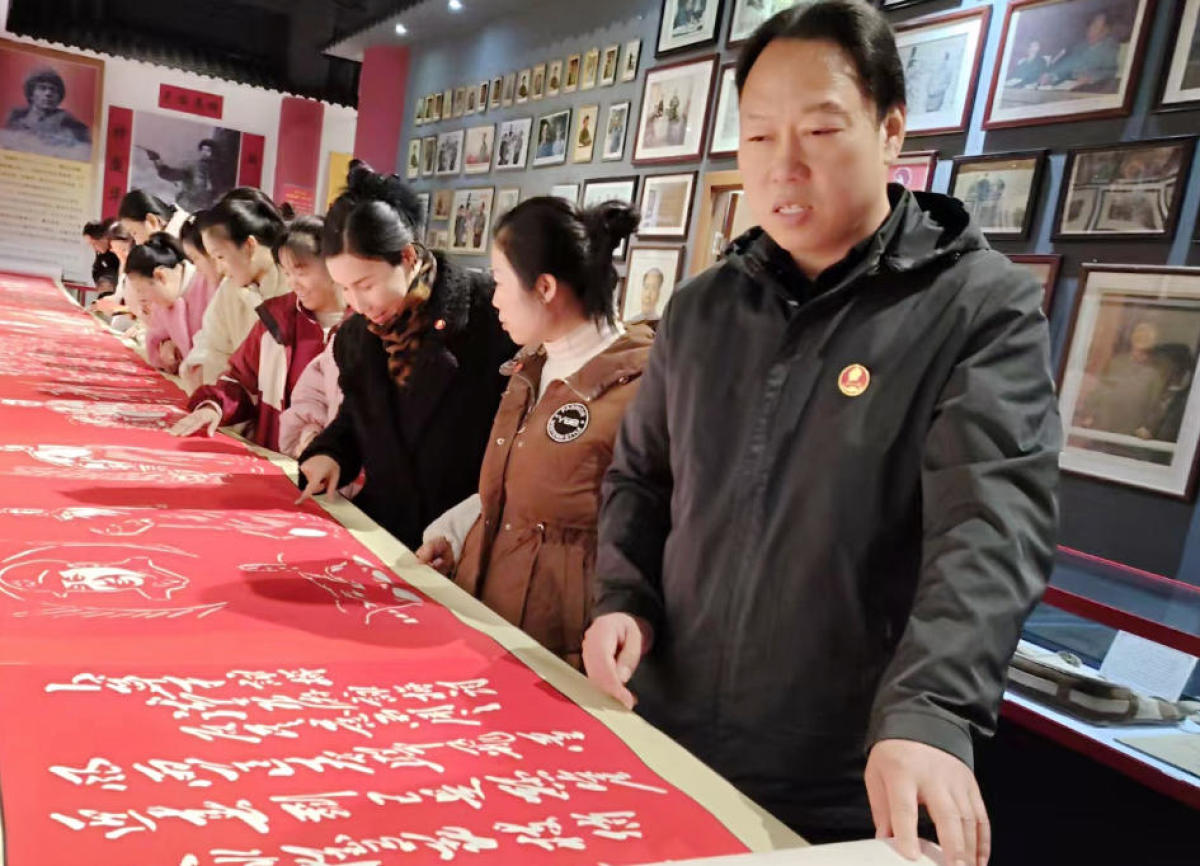 红纸凝情,刻刀传志。12月26日,在毛泽东同志诞辰132周年的特殊日子里,确山县尚城亿达双语学校的青年教师代表们走进确山红色记忆馆,一场别开生面的非遗剪纸长卷展览在此温情启幕。古老剪纸艺术与红色记忆交相辉映,让伟人精神在笔墨刀痕间代代相传。