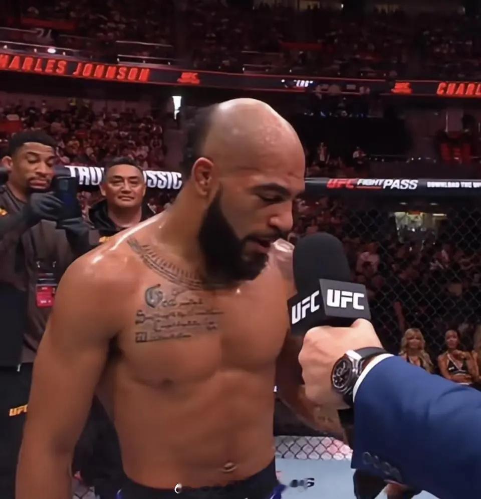 爆笑!美国选手照着手机说中文 中国翻译小姐姐表情亮了:听不懂北京时间12月29日,UFC终极格斗冠军赛官方发布了一则视频,可以说是非常搞笑,引起热议。这段视频其实不是最近的,而是来自今年8月在上海举行的UFC格斗之夜。当时,34岁的美国选手查尔斯-约翰逊KO中英混血不败新星隆尼-卡瓦纳。在现场中国观众的欢呼声中,约翰逊竟然开始说起了中文。他站在八角笼中,用并不流利的英文一字一句说道:“加油,加油,加油,中国。”站在旁边的戴眼镜的翻译小姐姐原本准备“英译中”,把他说的英语翻译给现场的中国观众听,没想到听到约翰逊说中文,直接露出了一个震惊的小表情。约翰逊一边看手机,一边用中文说道:“中国,中国,我来自美顾(美国),查尔斯-约翰森,记住我,记住我,我们一起土耳其(崛起),为你的梦想而战,为你的梦想而战!”外国主持人让翻译小姐姐给大家翻译一下,小姐姐有些不知所措,用英文说道:“他说的是中文,他说我爱中国。”看来,她也没怎么听懂约翰逊嘴里说的中文到底是啥意思。