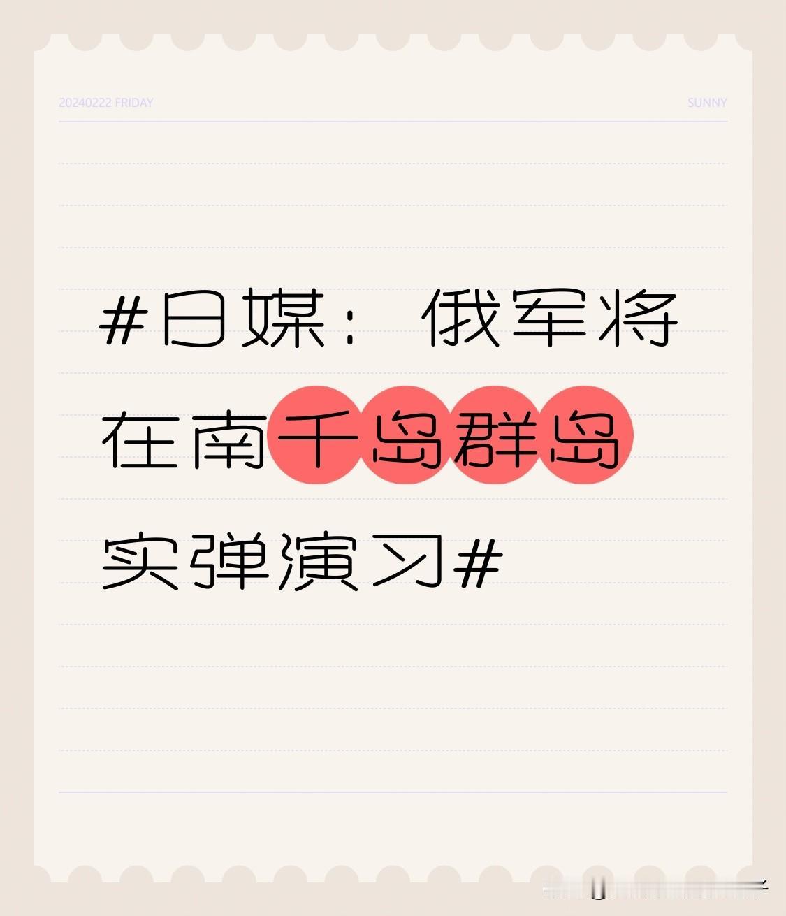 日媒:俄军将在南千岛群岛实弹演习 日媒报道,俄军将从明年元旦起在南千岛群岛举行为期两个月的军事演习,还包含连续多日的实弹射击课目。这让日本很不爽,毕竟两国在这(日本称“北方四岛”)的领土争端持续多年。 今年以来,俄罗斯在这及周边动作不断,几乎每月都有军事行动,还暂停外国船只“无害通过权”,日本多次抗议也没用。10月俄方还给附近无人岛命名,强化管辖。2022年俄乌冲突后,日本制裁俄罗斯,俄罗斯就强化在此的军事存在,停发日本人登岛许可。这次日本特使刚和俄方会谈完,俄方就宣布军演,看来在领土问题上,俄罗斯态度很坚决。