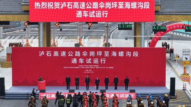 12月30日,记者从蜀道集团藏高公司获悉,今日12时,泸定至石棉高速公路(以下简称“泸石高速”)泸定段(伞岗坪互通至海螺沟互通)49公里建成,其中45.61公里投入试运行,标志着从成都至海螺沟实现全程高速公路直达,行车时间缩短至约3.5小时。预计可有效分流原省道80%以上的车流量,显著缓解川西旅游黄金线路的交通拥堵压力。