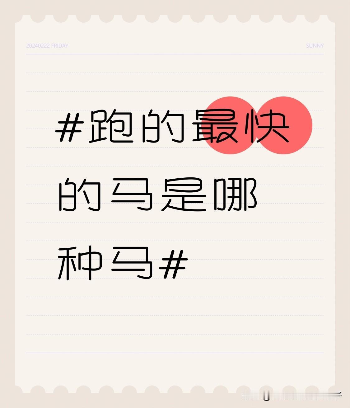 要说跑的最快的马,很多人第一反应可能是纯血马。纯血马是近代英国人用阿拉伯马和英国本地马杂交繁育的,以速度著称,体型完美,个性敏锐勇敢。在国际赛马赛事里,它包揽了1000米到5000米的最快纪录,普通纯血马速度能达每小时60千米,像纯血母马“Brew”还创下约每小时70.3千米的速度纪录。 不过,冲刺速度上夸特马更胜一筹。它因速度得名,在400米比赛中表现卓越,最快纪录约每小时88千米。所以论冲刺,夸特马才是王者。
