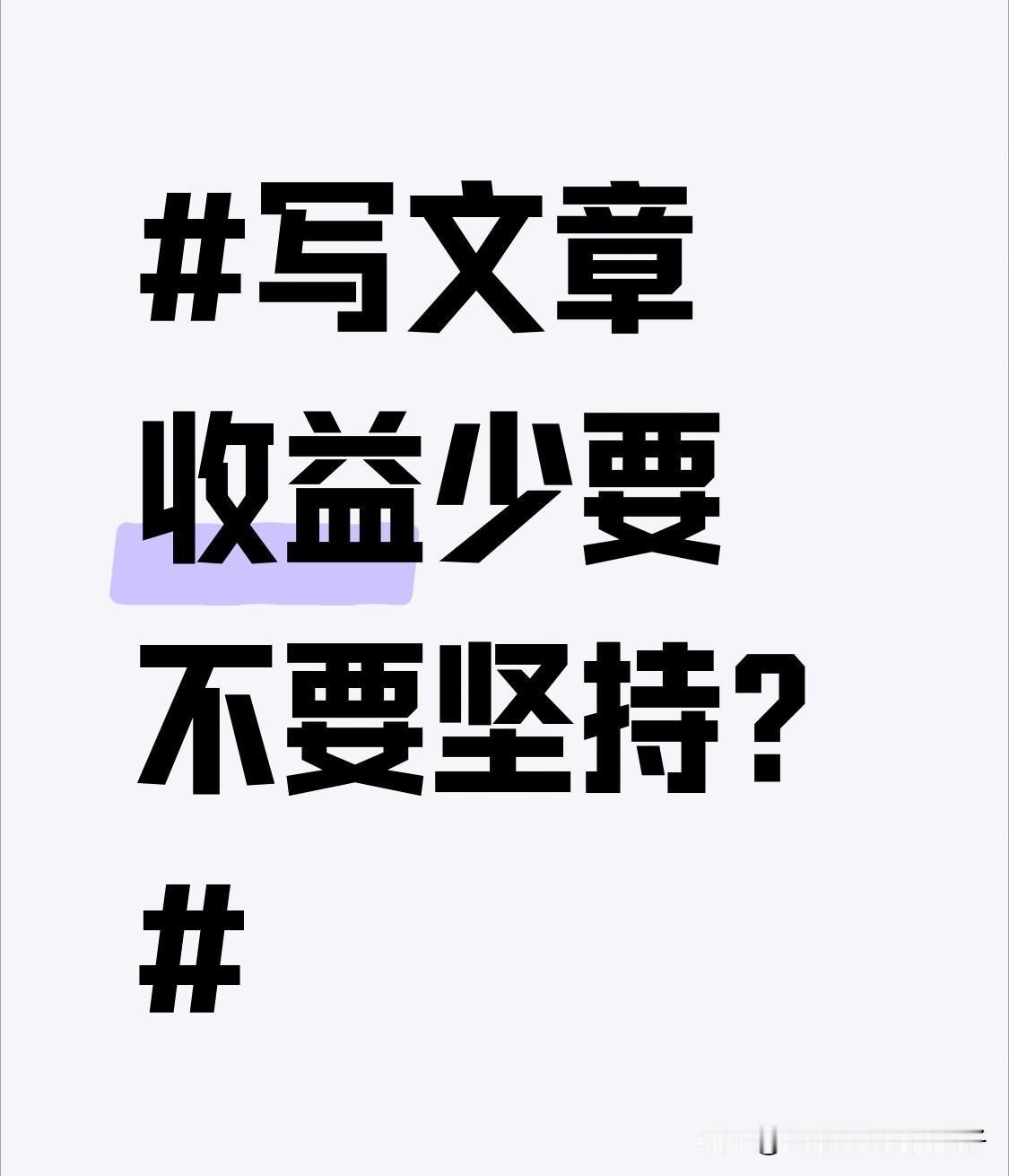 写文章收益少要不要坚持,得先想想自己为啥写。要是单纯冲着钱,那收益少可能会让人很挫败。但要是出于热爱,把写作当成安放情绪、与世界对话的方式,收益就只是附属品。 很多人抱怨收益只有几分几毛,可那些深夜打磨的字句、查阅资料的努力,还有读者一句“有启发”带来的满足,都是宝贵的收获。写作的收益不只是金钱,更是思维沉淀和表达精进。 在这个追求速成的时代,坚持很难得。或许再给文字一点时间,当热爱足够深厚,光芒自会到来。