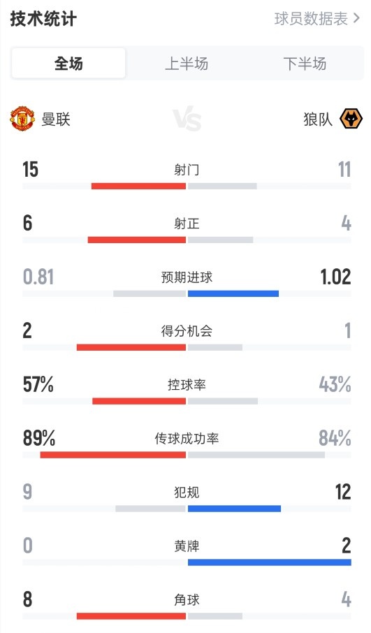 直播吧12月31日讯2025-26赛季英超联赛第19轮,曼联主场1-1战平狼队。