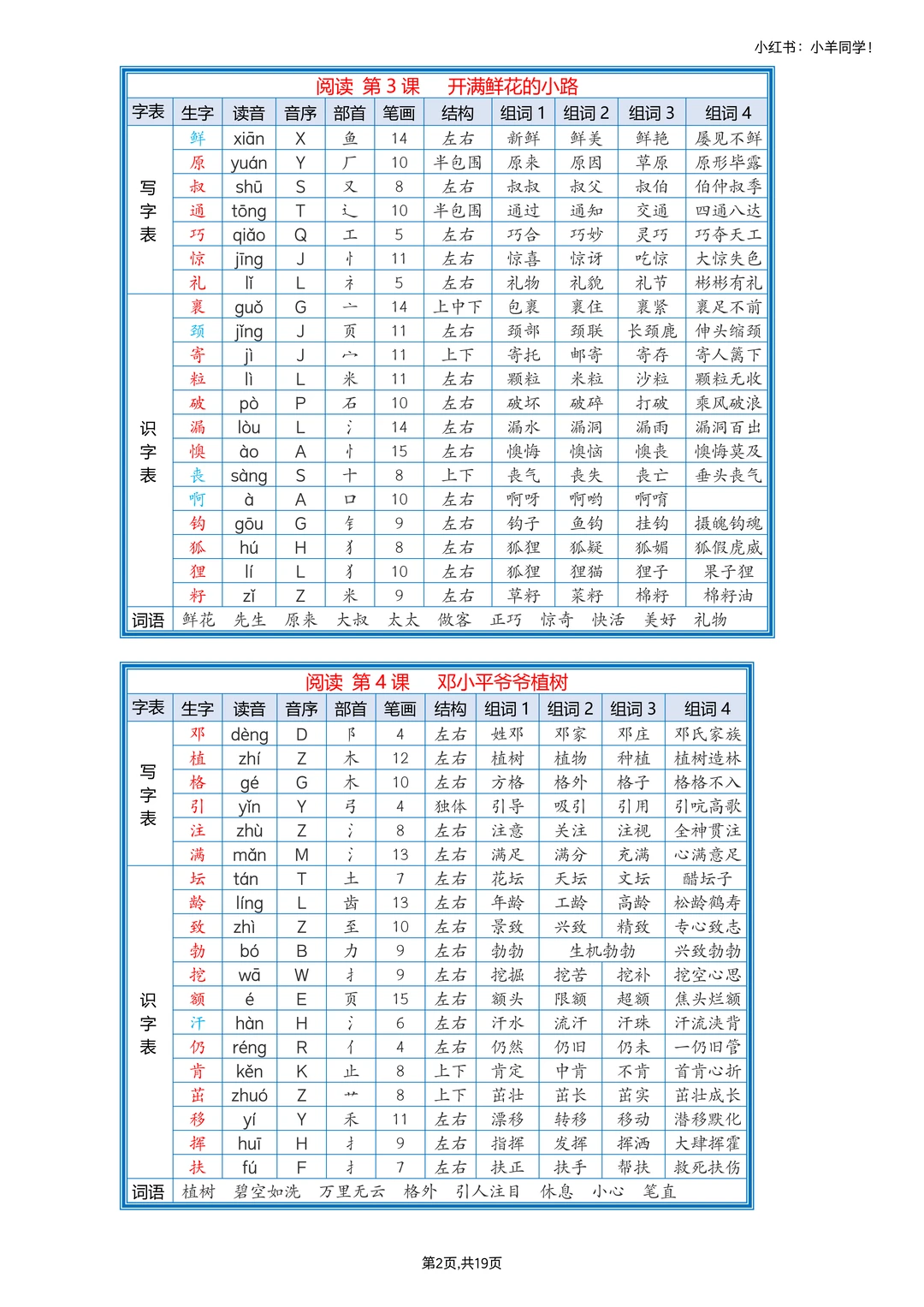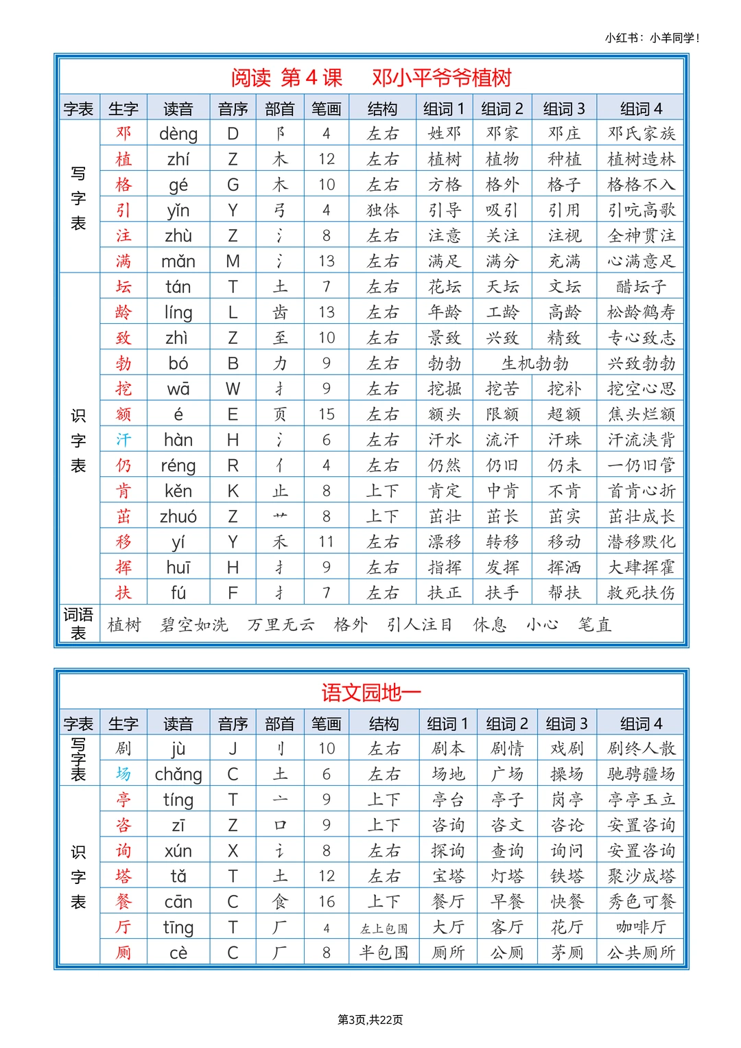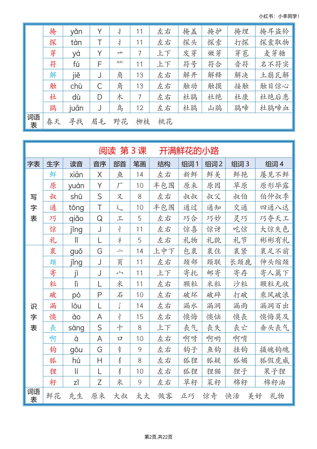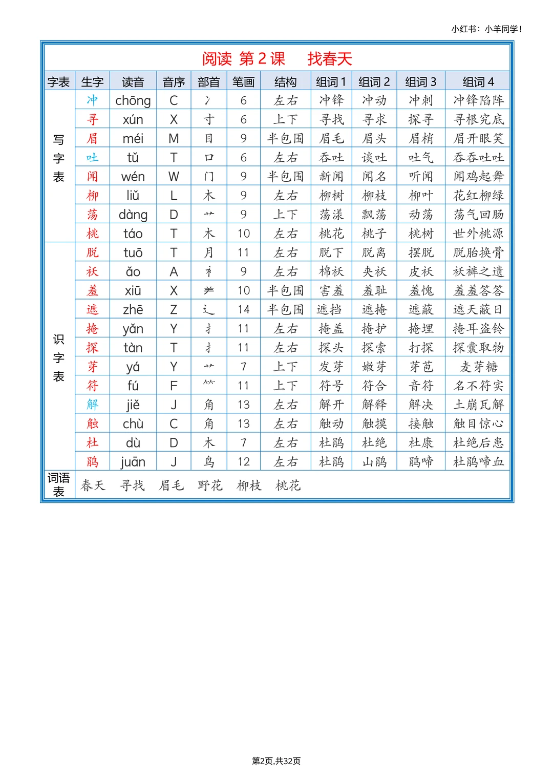 剪下来贴课本,随时看,记生字组词超方便