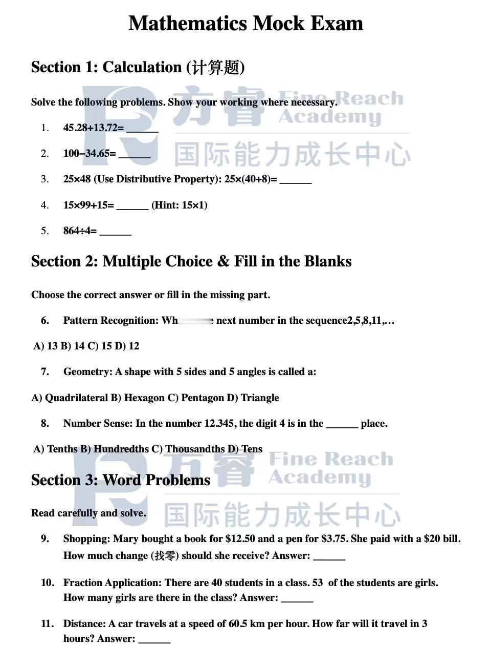 上中国际二升三Mock Test 仅作参考 国际学校 国际学校择校 上海国际学校择校 国际部 上海国际学校 上中国际备考 上中国际二升三 上中国际插班