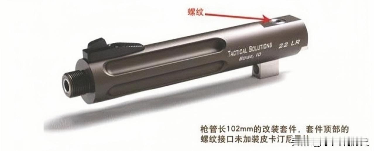 美国战术解决方案公司Trail-Lite枪管套件 勃朗宁Buck Mark运动手枪:“我想换个枪管耍耍!”战术方案公司大手一挥:安排!Trail-Lite枪管改装套件这就来报到。 这款手枪是个“特立独行”的主儿,枪管焊死不动弹,全靠后面的枪机来回跑,把子弹喂进去、空壳踢出来。 改装套件是铝合金做的,颜值党狂喜——好几种颜色任你挑;内里的不锈钢枪管是硬核实力派,102毫米和140毫米两种长度,专吃0.22英寸LR子弹。 顶部后面藏着个螺纹接口,接上带照门的导轨,瞄准镜往上面一搁,精准度直接拉满;枪管上的准星是“可拆卸选手”,刀形的经典,光纤的亮眼,随你选。 枪口还有个小彩蛋:带螺纹!拧上个蜂窝状消焰器,开枪时火焰乖乖收敛,后坐力也变得温柔多了。