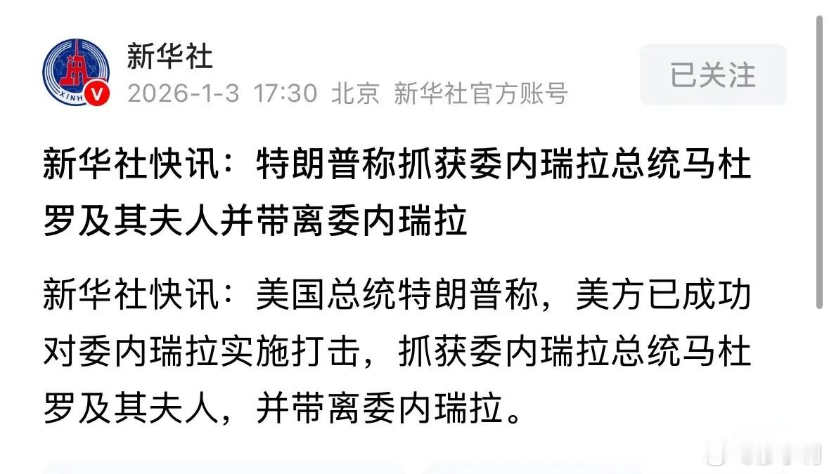特朗普称已抓获委内瑞拉总统如果特朗普的话属实,那天下还有王法吗?堂堂一主权国家的总统就这么被“带走”啦?热点观点