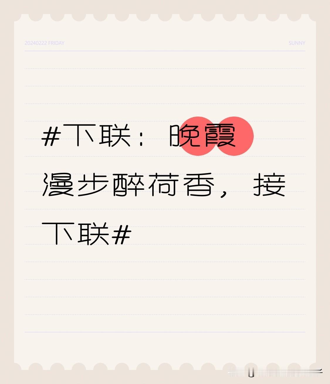 上联嘛,我觉得“晓雾闲游迷竹韵”挺合适。“晓雾”对应“晚霞”,都是不同时段的自然景象;“闲游”对“漫步”,动作姿态很搭;“迷竹韵”和“醉荷香”,一个被竹子的韵味所迷,一个沉醉于荷花的香气,意境也相符。就像在“落日凝眸欣柳叶,晚霞漫步醉荷香”里,有落日、晚霞这样美妙画面,我对的这句也营造出晓雾中漫步竹林的悠然之感。对对联还挺有意思,能让人在文字里感受不同的意境。