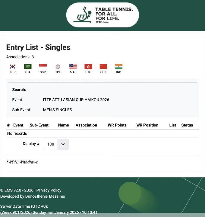 国乒已报名亚洲杯韩乒多名主力放弃亚洲杯据国际乒联官网,国乒已报名亚洲杯。第35届乒乓球亚洲杯将于2026年2月4日至8日在海南海口五源河体育馆举办。此外据韩媒报道,2月亚洲杯与韩国国家队选拔赛赛程撞期,选手陷入“两难抉择”选拔赛关乎世锦赛、亚运会参赛资格,优先级更高。女队仅2人、男队或仅3人参赛。有选手表示:“参加亚洲杯固然重要,但代表韩国征战世锦赛与亚运会,才是我们作为运动员的更大目标”