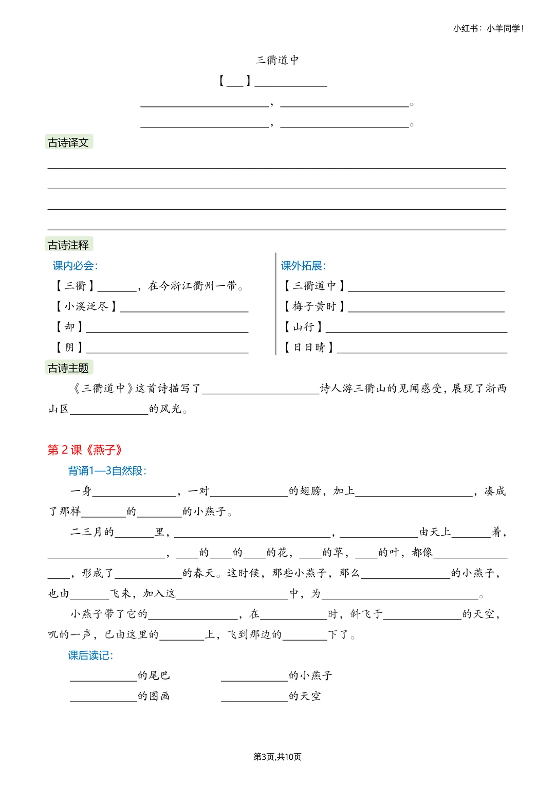 别小看这短短假期,三年级下册语文必背内容可是重中之重,必须牢牢掌握!