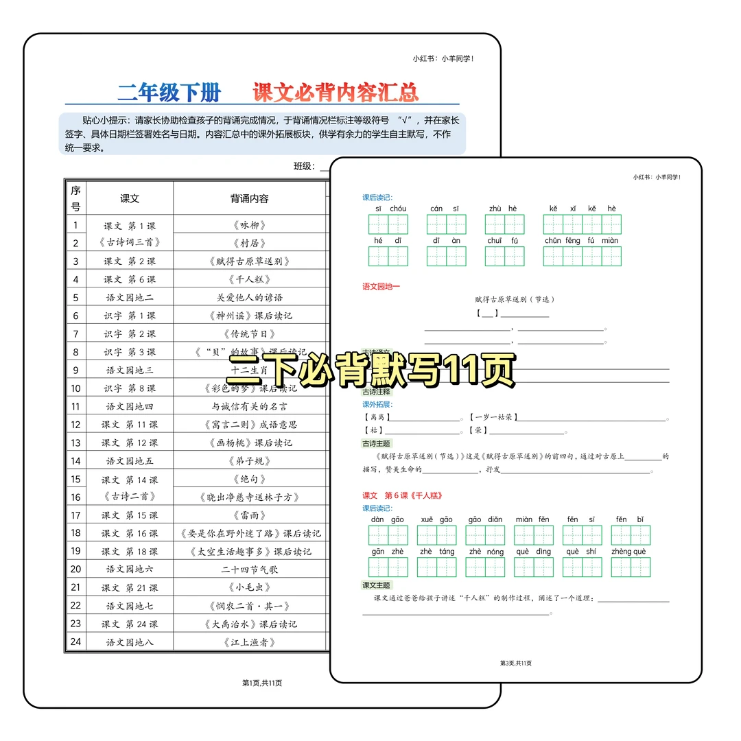 二下需要记忆的知识点特别的零碎呀~ 这份默写单一共11页,和必背内容是一套哦~ ⚠️原创整理,禁止转载发布网络平台或商用。