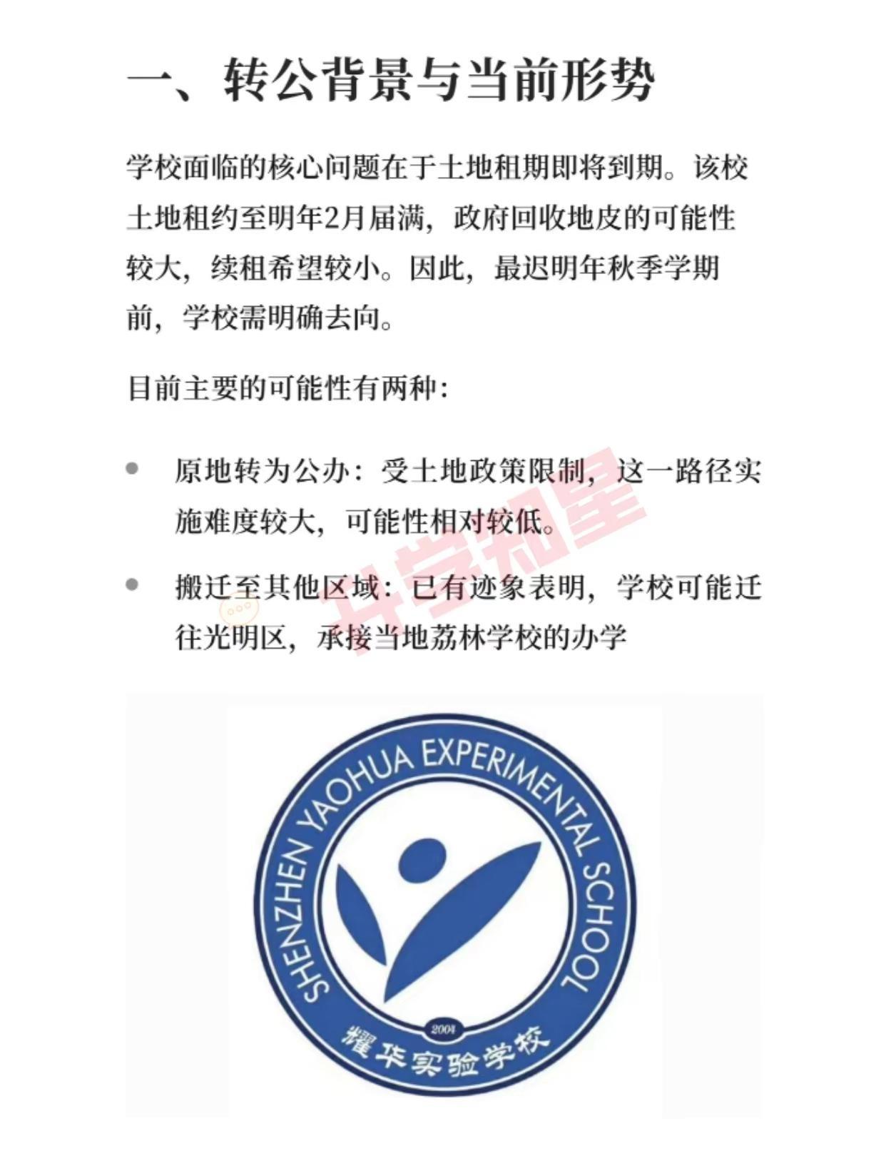耀华转公悬念揭晓?是转公还是搬迁?。耀华福田区 耀华 民转公 福田区