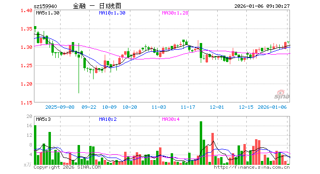 1月6日,金融地产ETF(159940)开盘涨0.08%,报1.313元。金融地产ETF(159940)重仓股方面,中国平安开盘涨0.06%,招商银行涨0.24%,东方财富跌0.29%,兴业银行涨0.00%,中信证券涨0.10%,工商银行跌0.13%,农业银行涨0.00%,国泰海通涨0.29%,交通银行涨0.14%,江苏银行涨0.10%。