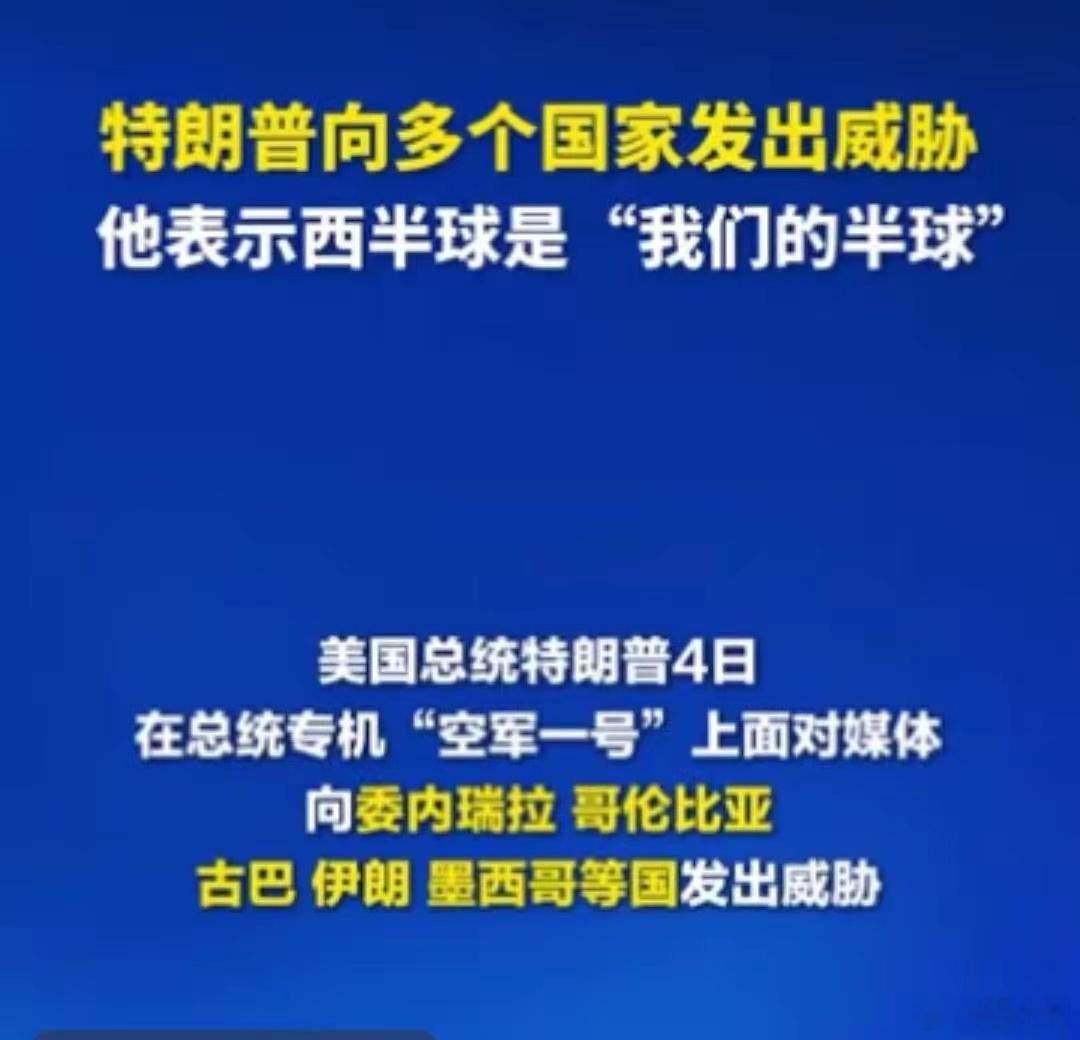 特朗普威胁多国这老头太狂妄了!叫嚣整个西半球都是特朗普的,很快整个宇宙他都要了!热点观点